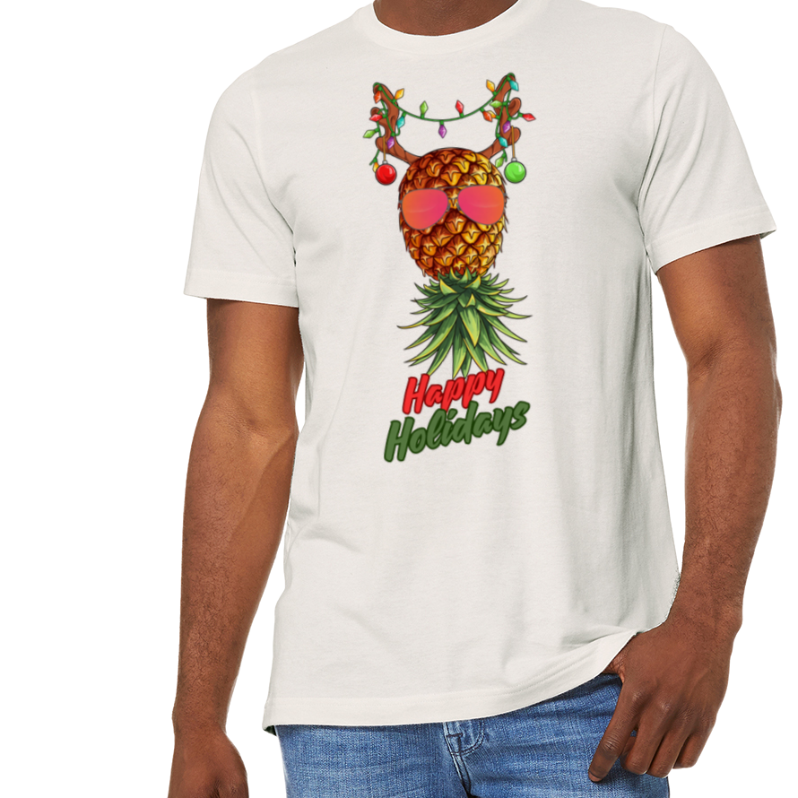 Happy Holidays Reindeer Pineapple T-Shirt - Unisex - Crew Neck