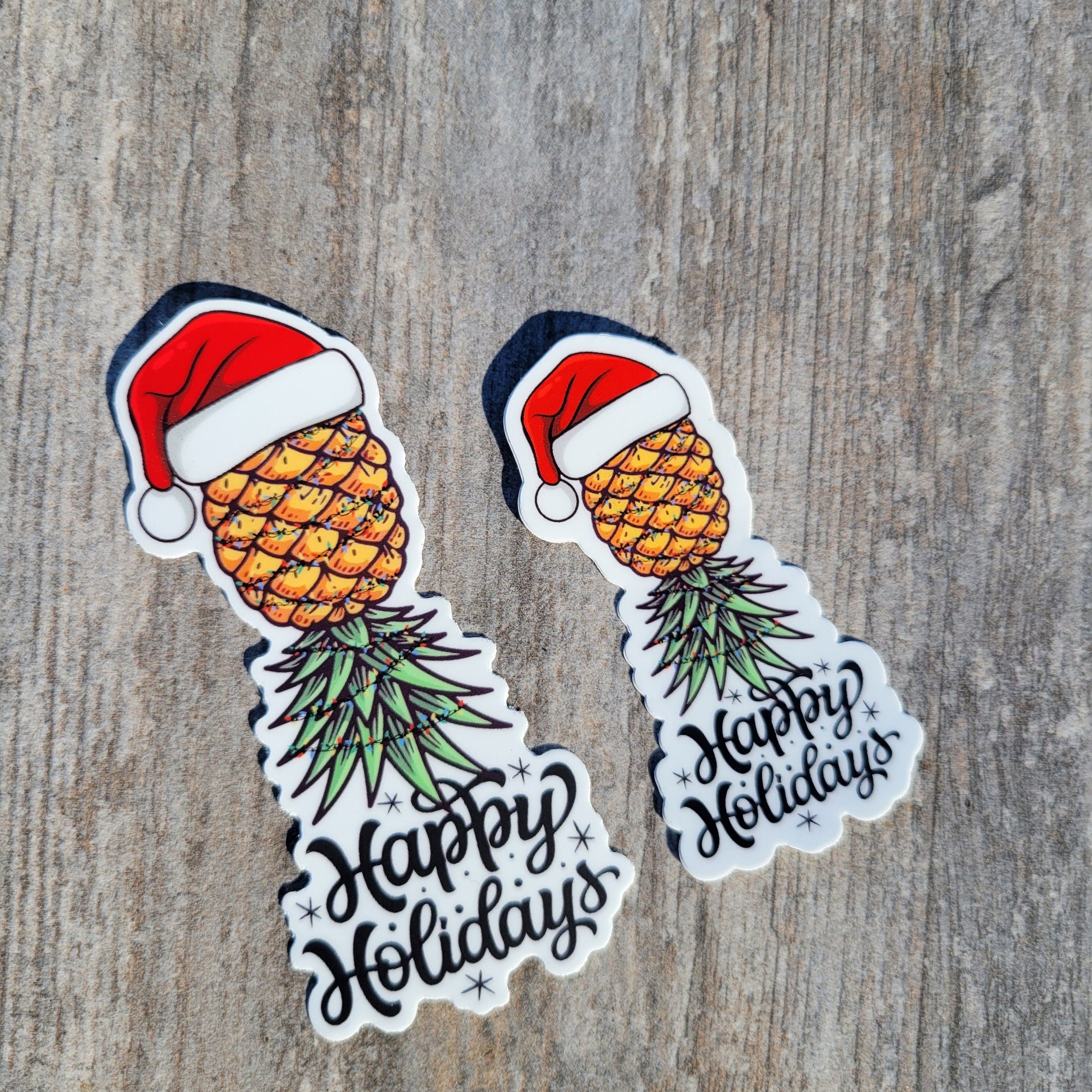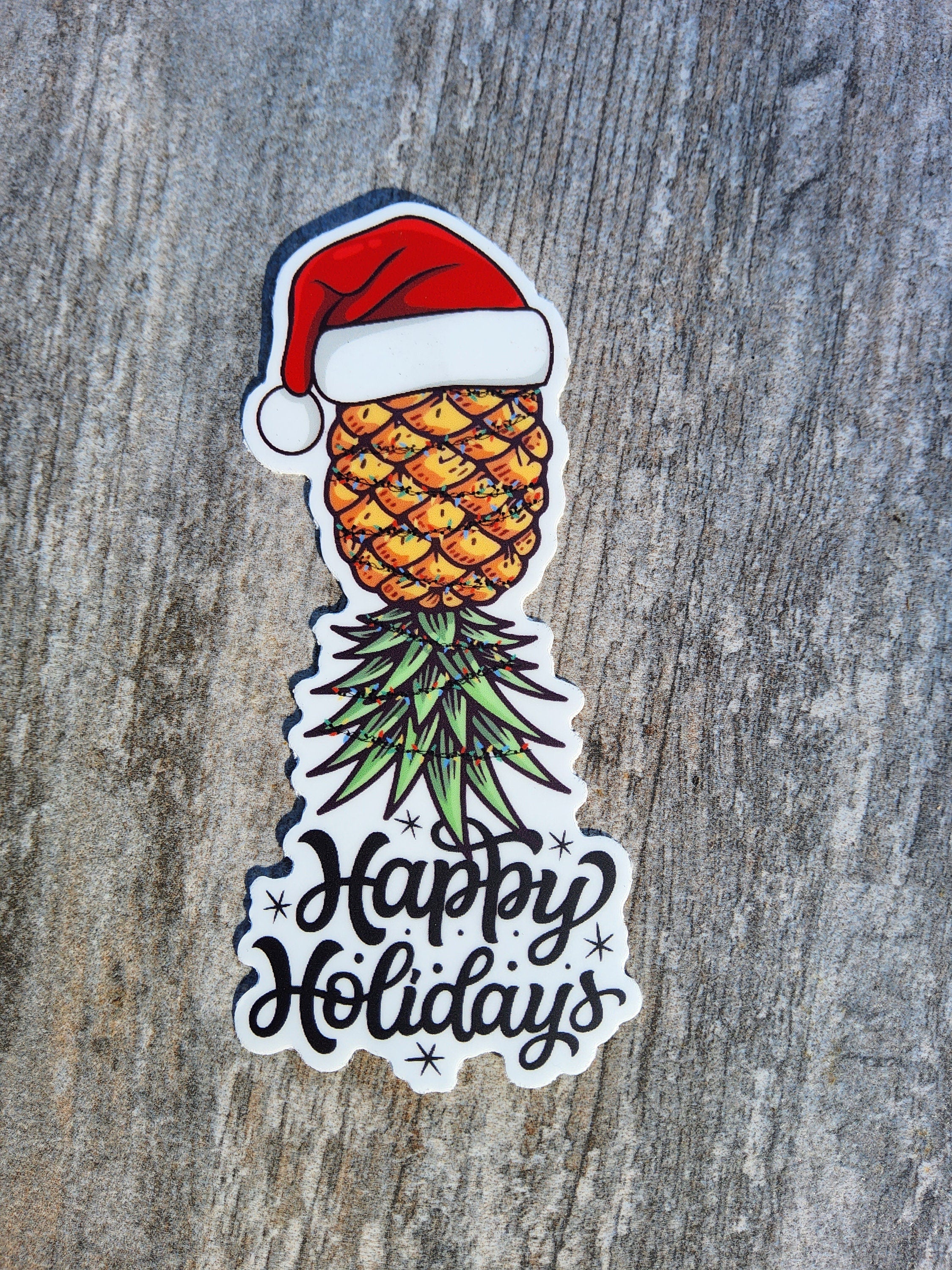 Upside Down Happy Holiday Santa Sticker - Waterproof