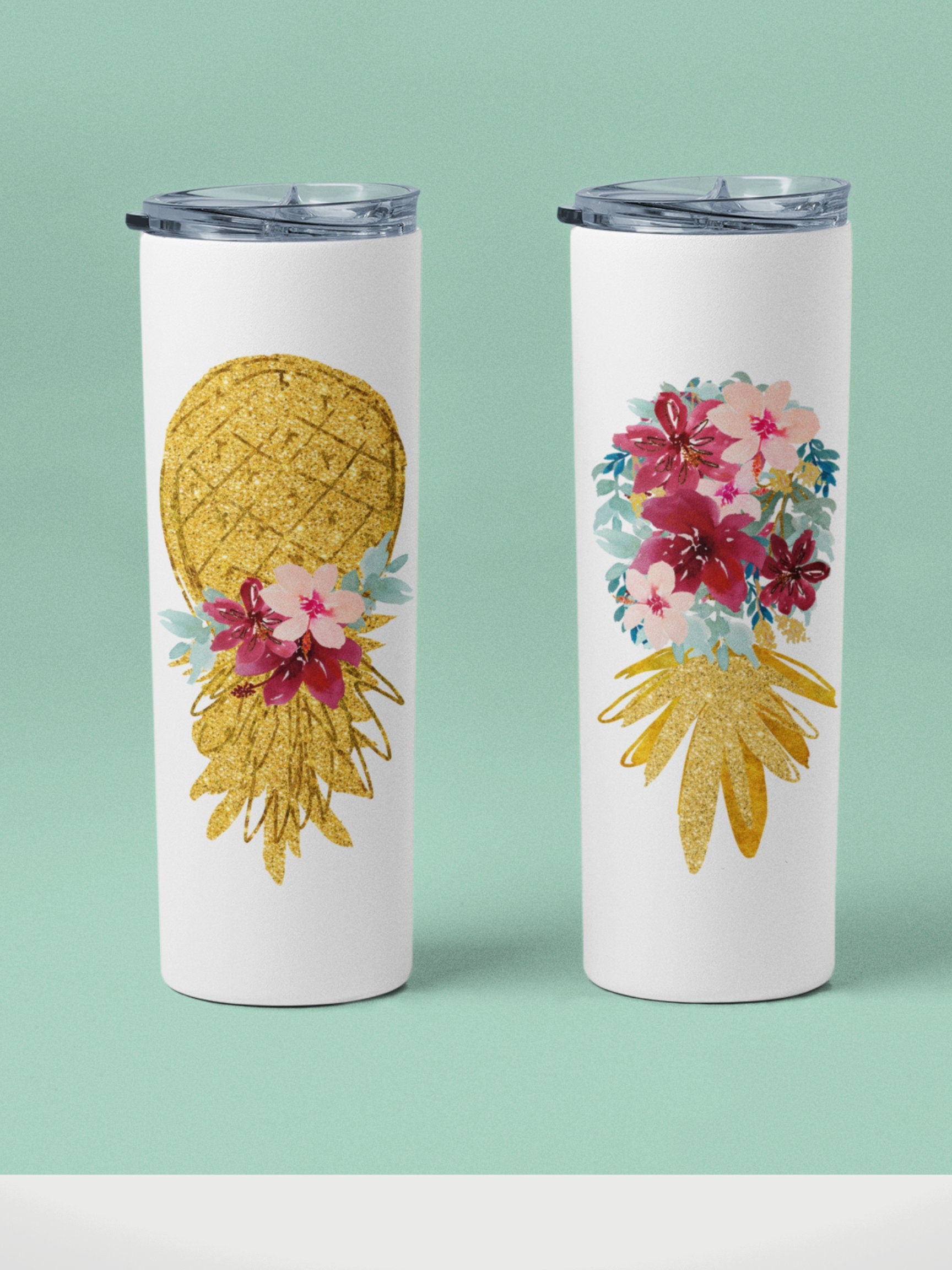 Introducing our stunning 20 oz. Beautiful Floral Upside Down Pineapple Tumbler! This unique tumbler features a striking upside down pineapple design adorned with vibrant floral accents, making it a truly eye-catching piece. Whether you're on the go or enjoying a relaxing day at home, this tumbler is perfect for keeping your favorite beverages both hot and cold. Stand out from the crowd with this beautiful and practical drinkware that is sure to brighten up your day. Add this beautiful floral upside down pineapple tumbler to your collection today!