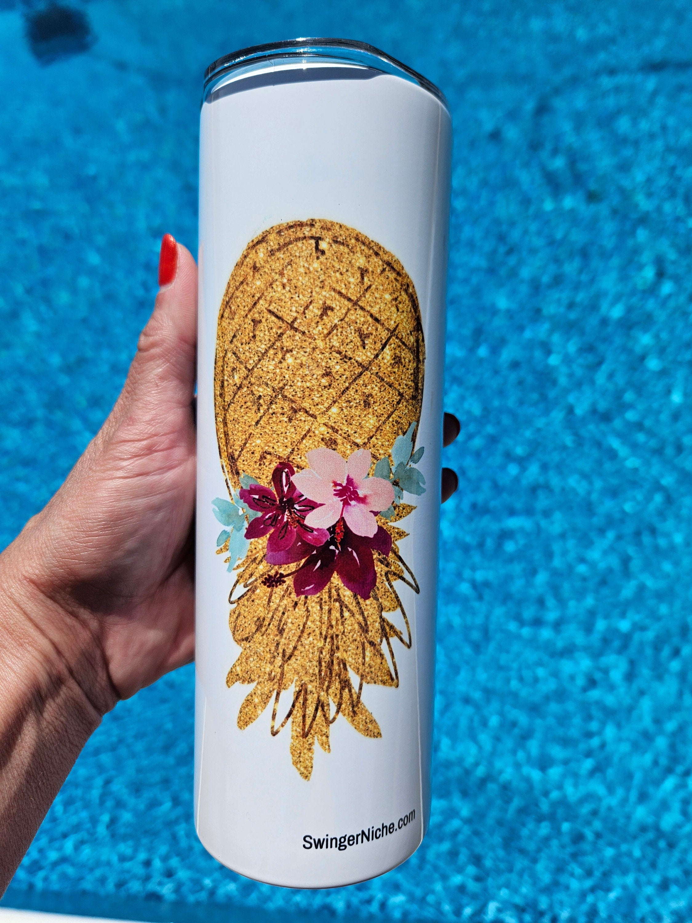 Swinger Lifestyle Tumbler with Upside Pineapple in a beautiful floral design, Personalized Option