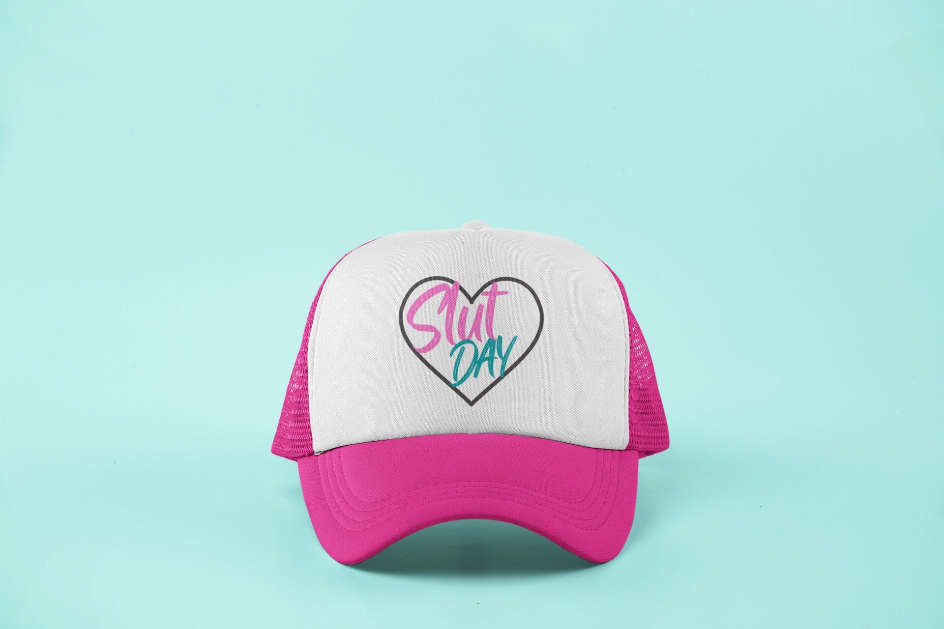 Introducing our bold and stylish Slut Day Trucker Hat! Available in two colors to suit your unique lifestyle, this hat is the perfect accessory to add a touch of edgy flair to your look. Made with high-quality materials, this hat combines comfort and statement-making style effortlessly. Whether you're hitting the streets or heading to a festival, stand out from the crowd with our Slut Day Trucker Hat!