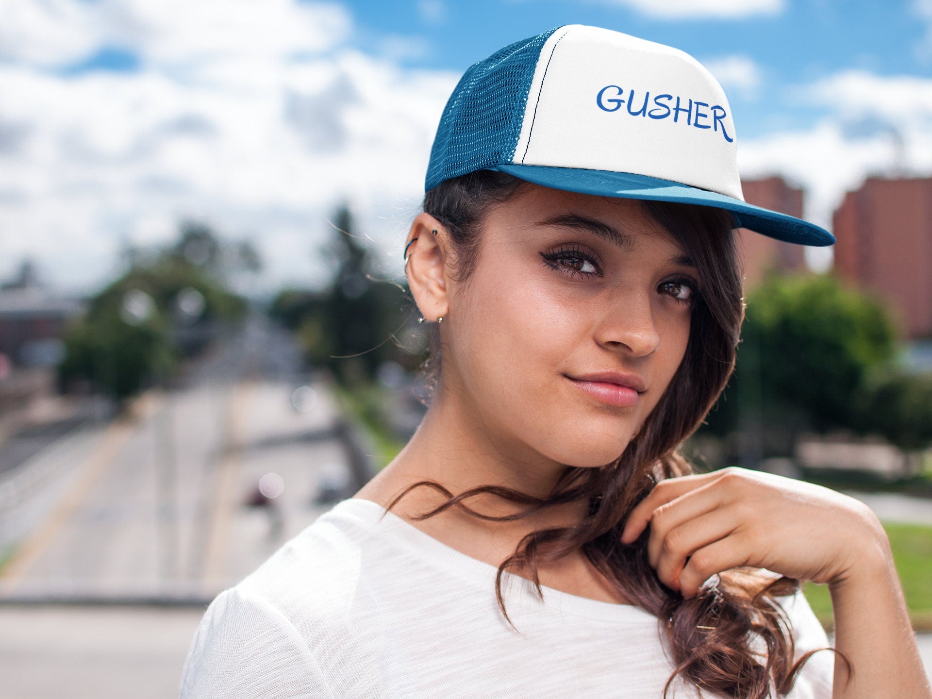 Introducing our bold and fun Gusher and Squiter Trucker Hat! Available in two colors to suit your unique lifestyle, this hat is the perfect accessory to add a touch of edgy flair to your look. Made with high-quality materials, this hat combines comfort and statement-making style effortlessly. Whether you're hitting the streets or heading to a festival, stand out from the crowd with our Trucker Hats!