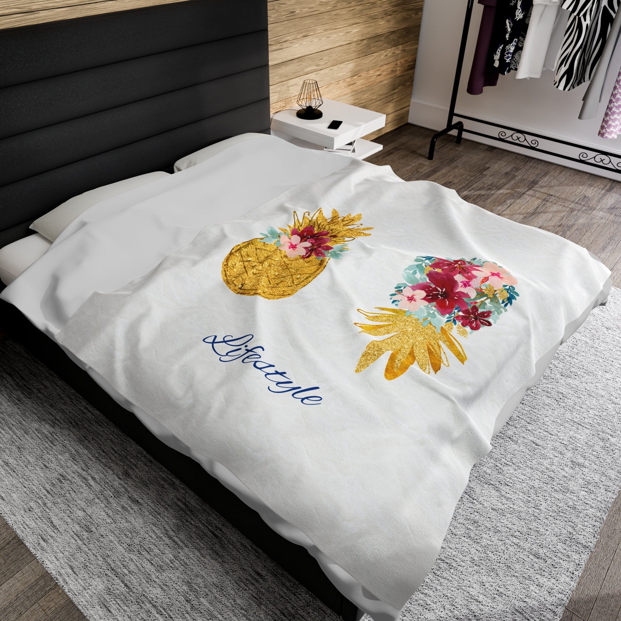 Lifestyle Upside-Down Pineapple Velveteen Plush Blanket for the Swinger Lifestyle, Gift for Her, Airplane Blanket