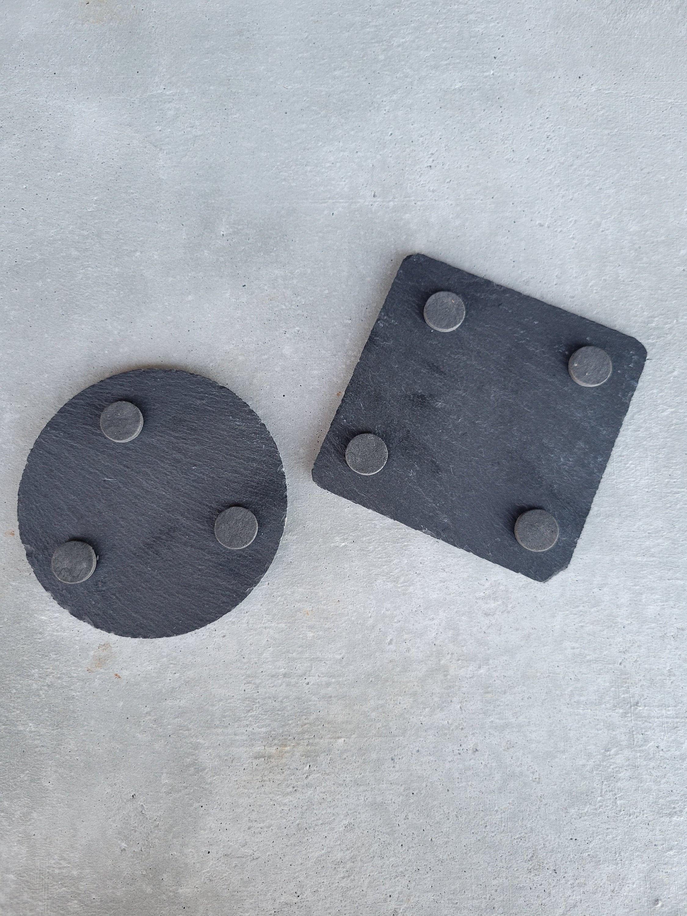 They are laser engraved by our laser machine with the choice of a square or a circle style.