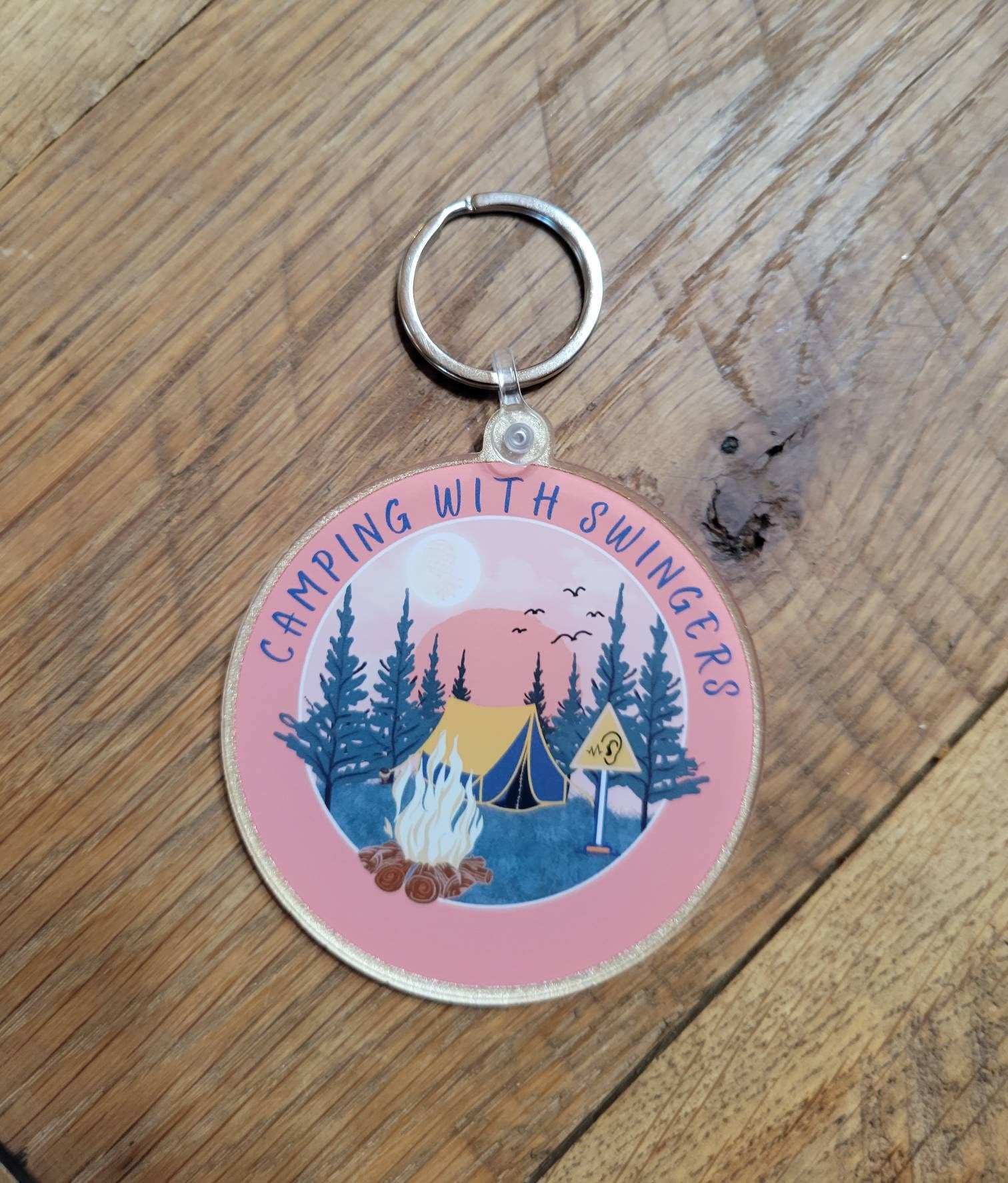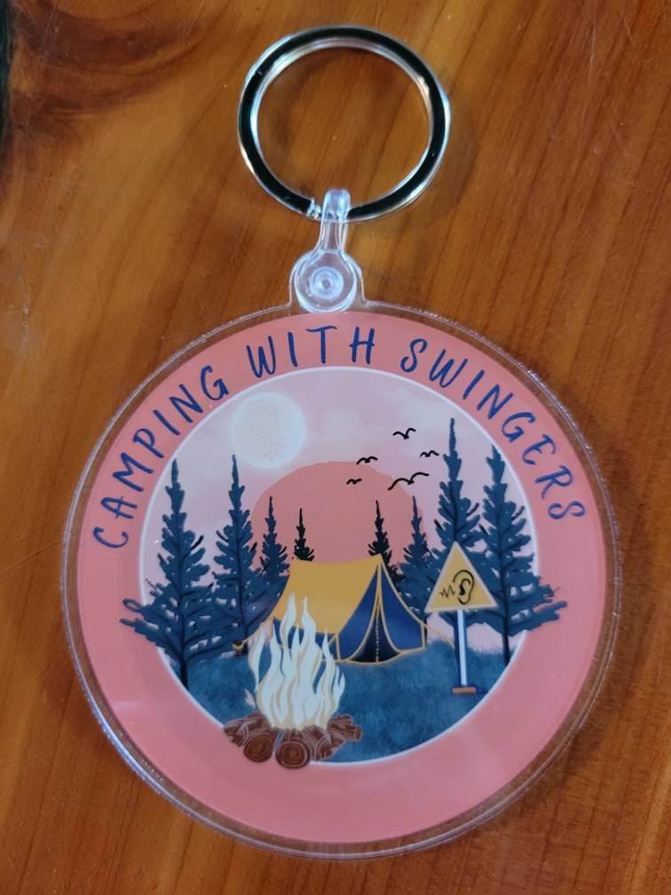 Swingers Camping keychain / Tent or Camper Decor / Upside down pineapple / Swinger lifestyle keychain / Acrylic keychain / Lifestyle