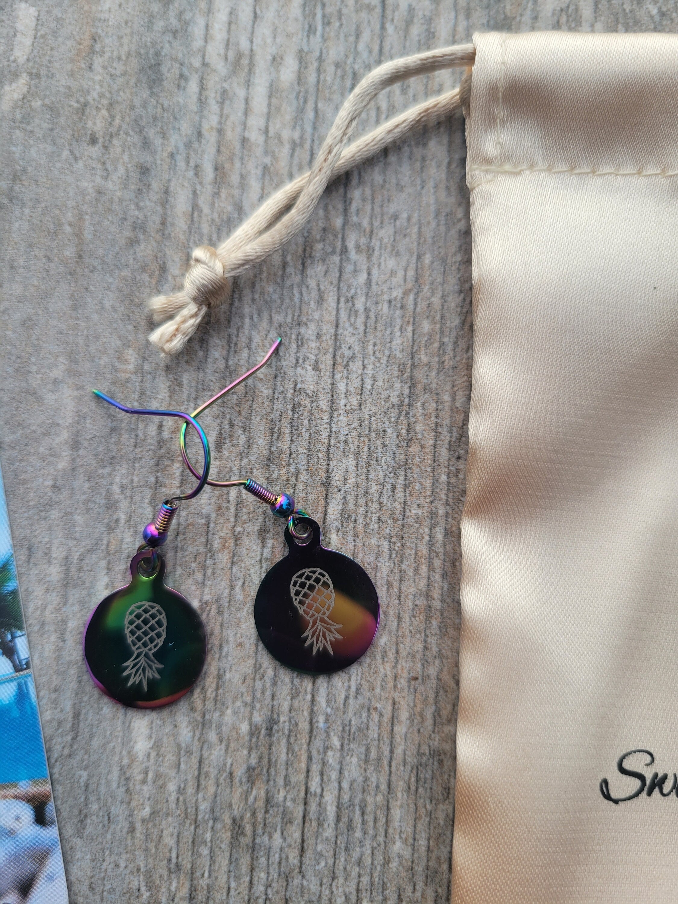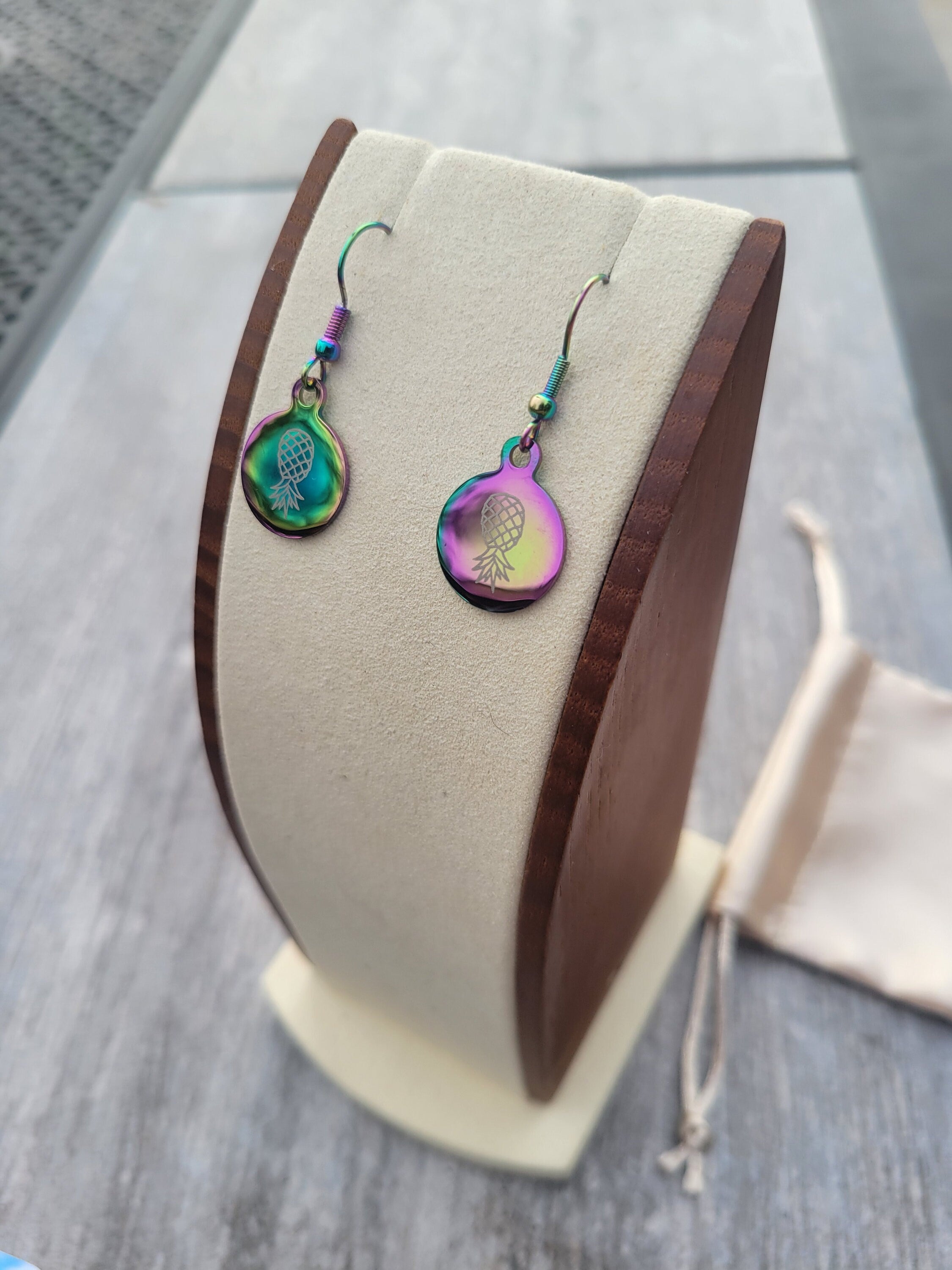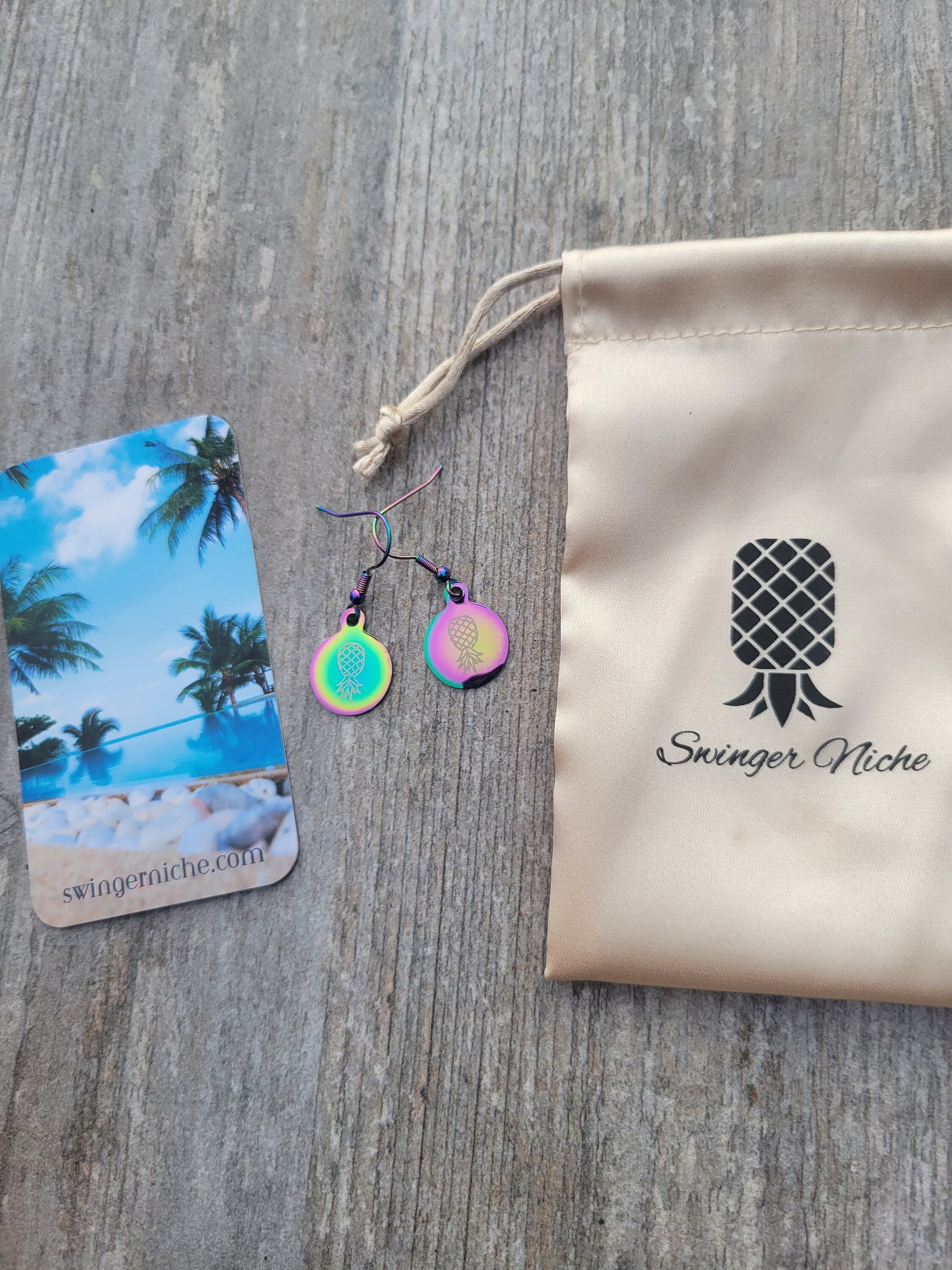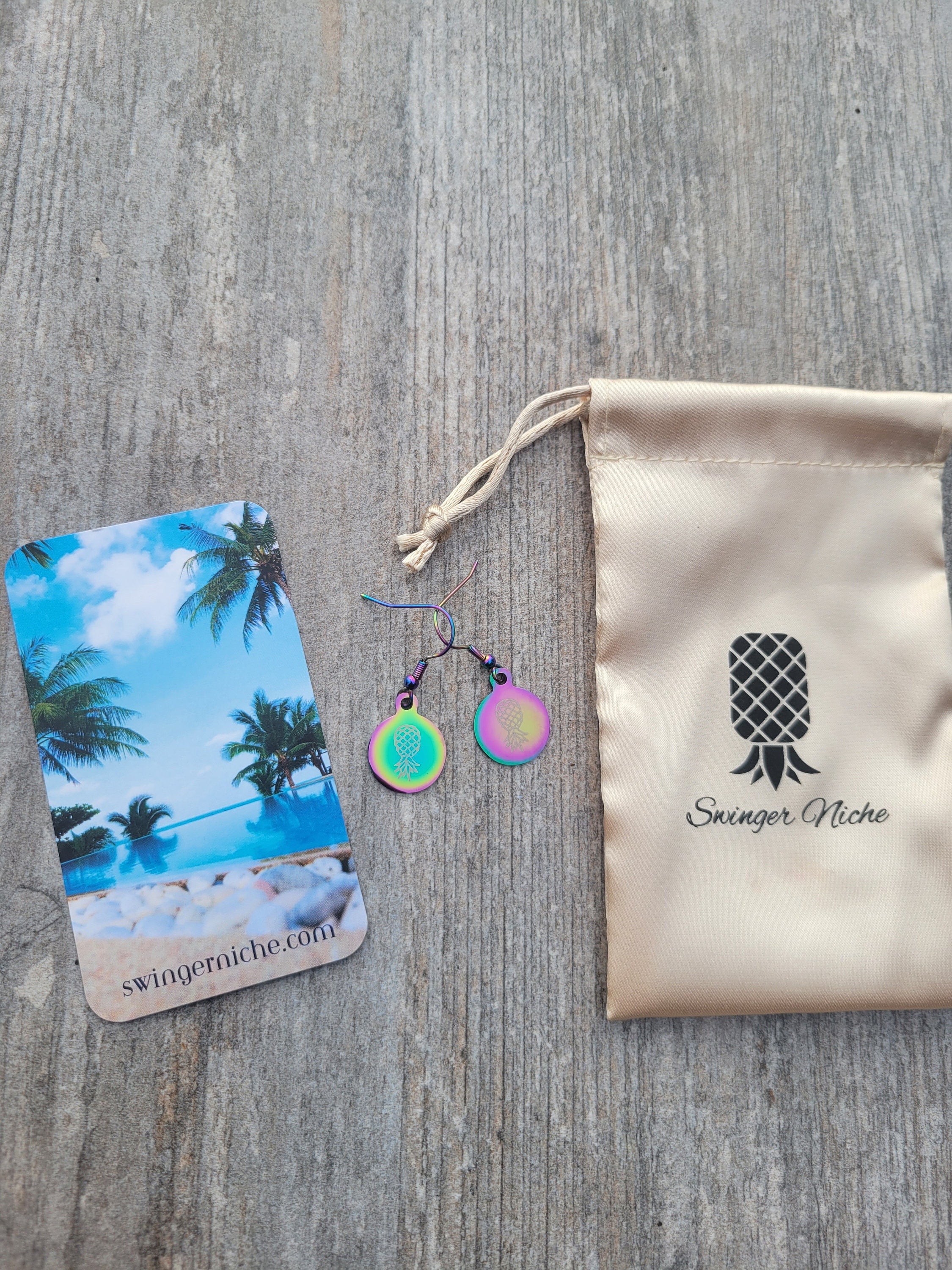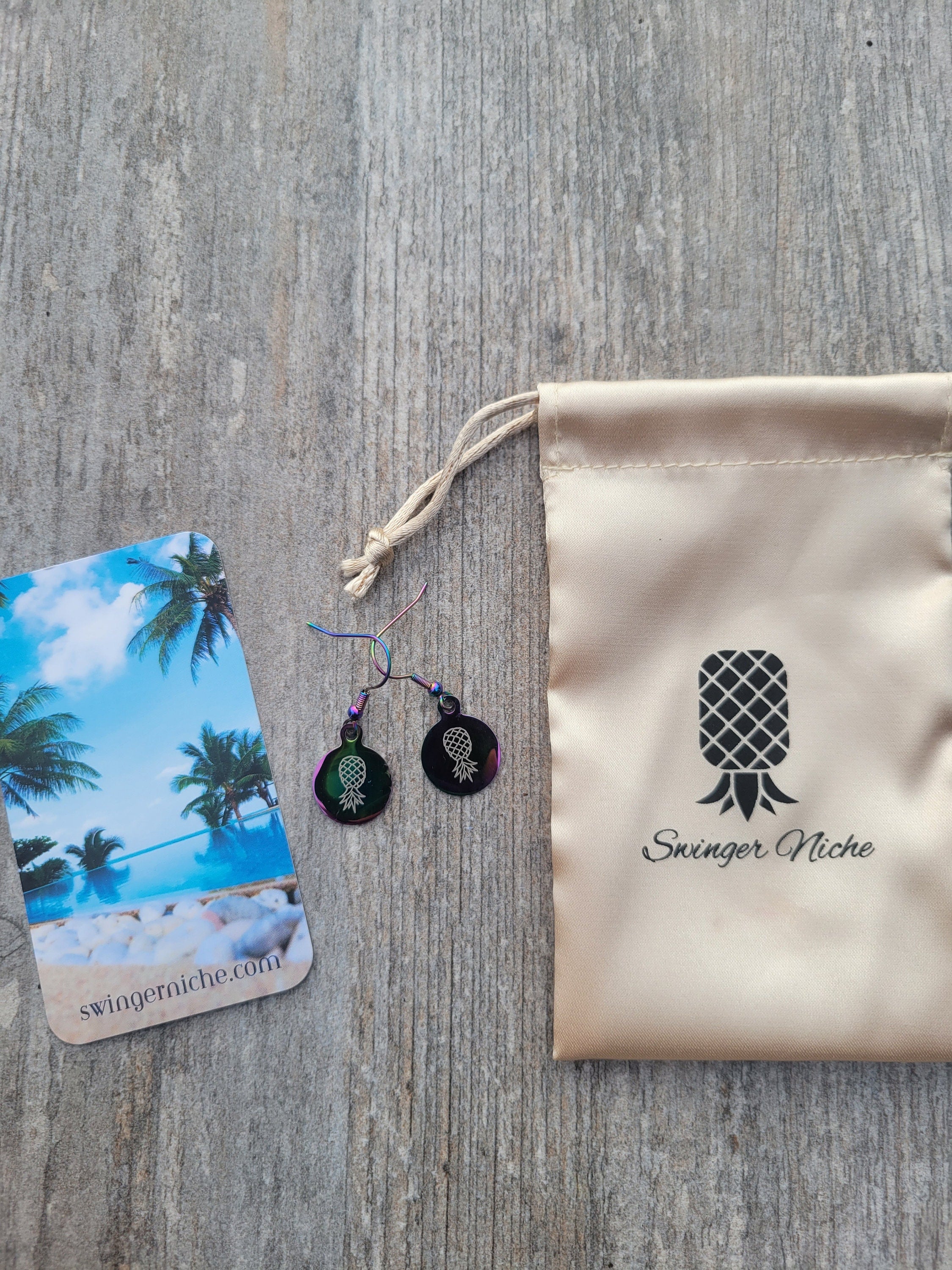 Holographic Pineapple Earrings for the lifestyle, Swinger Upside Down Pineapple Earrings, Alternative Lifestyle Earrings / Stainless Steel