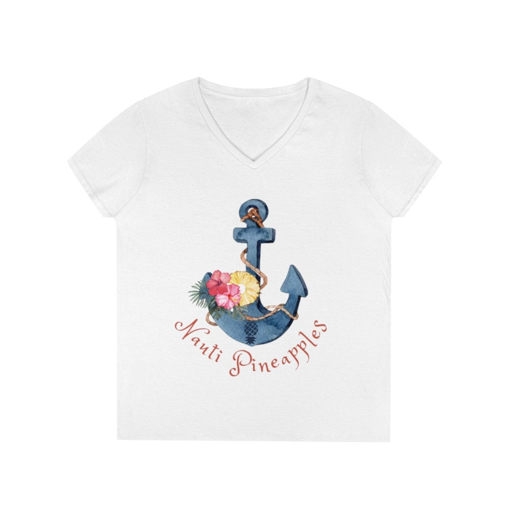 Ladies' V-Neck T-Shirt, Nauti Pineapple T-shirt, Upside down pineapple anchor tshirt, boating shirt, Pineapple Shirt