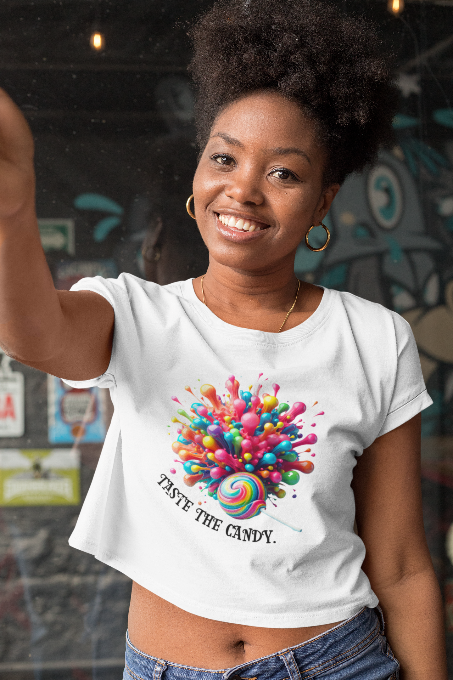 Get ready to Taste The Candy in this vibrant Crop Top featuring Bursting Rainbow Colors! Stand out from the crowd with this eye-catching top that is perfect for adding a pop of color to your wardrobe. Handmade with love, this unique piece is sure to turn heads wherever you go. Upgrade your style game with a touch of sweetness and color today!