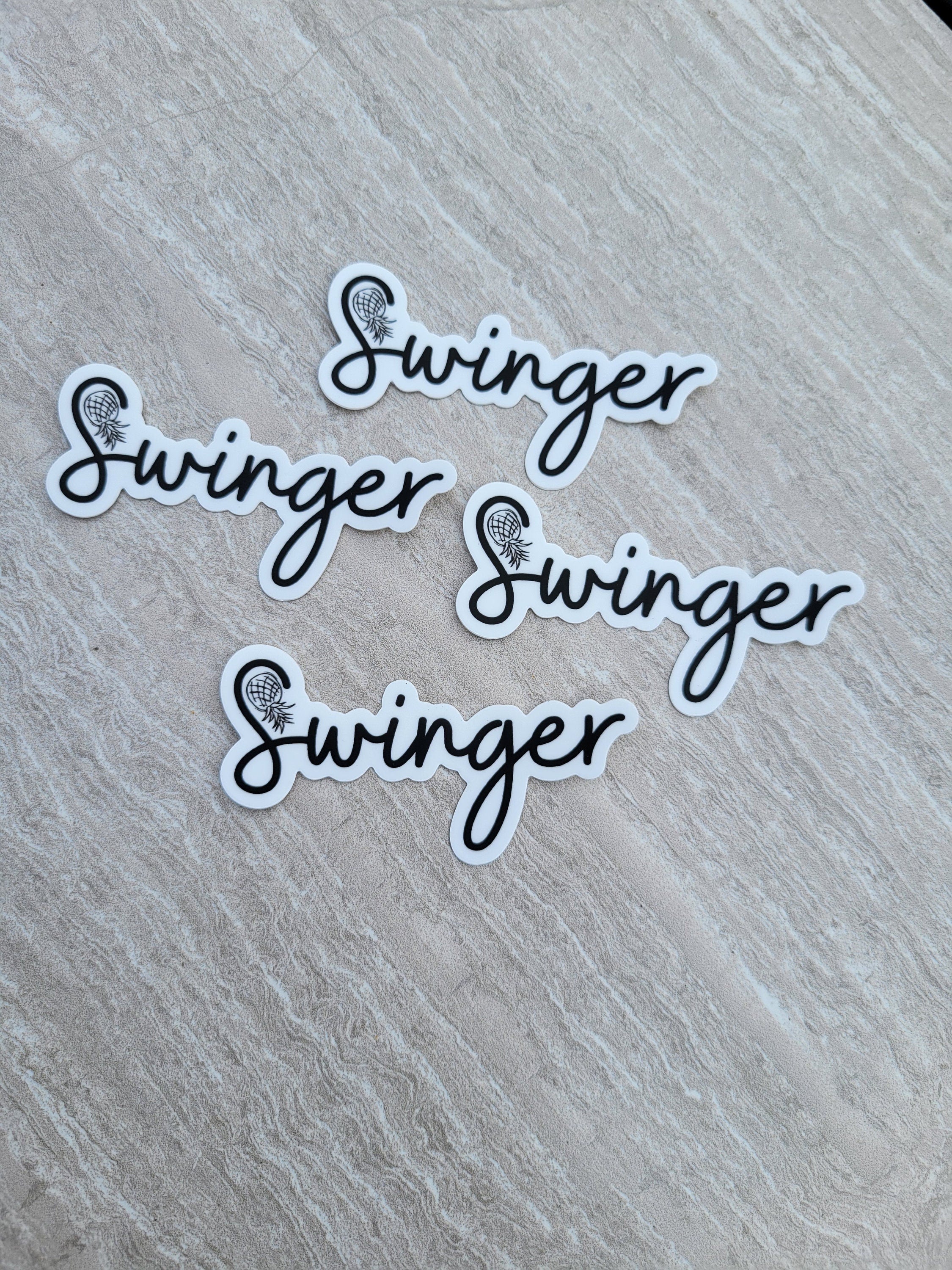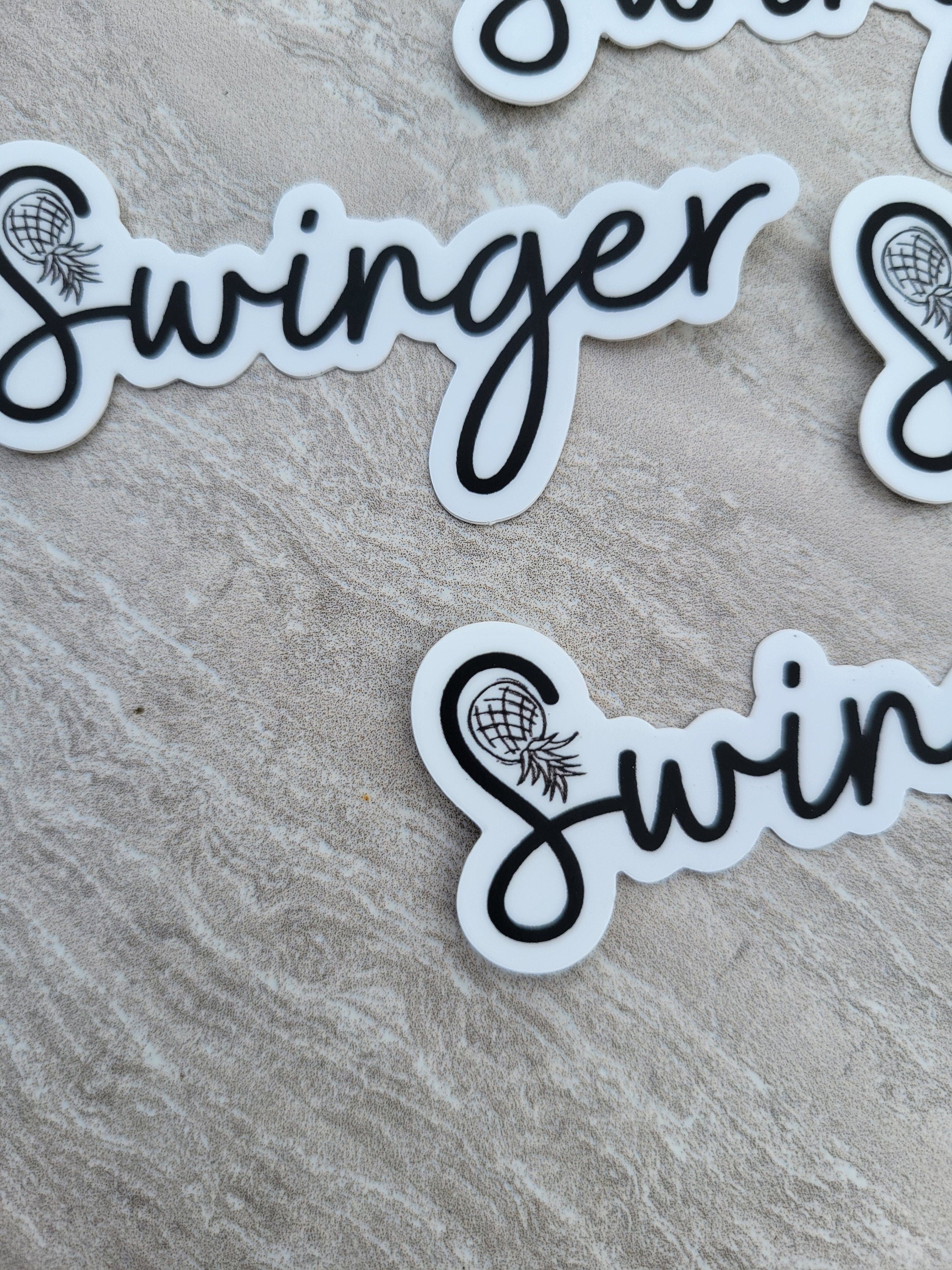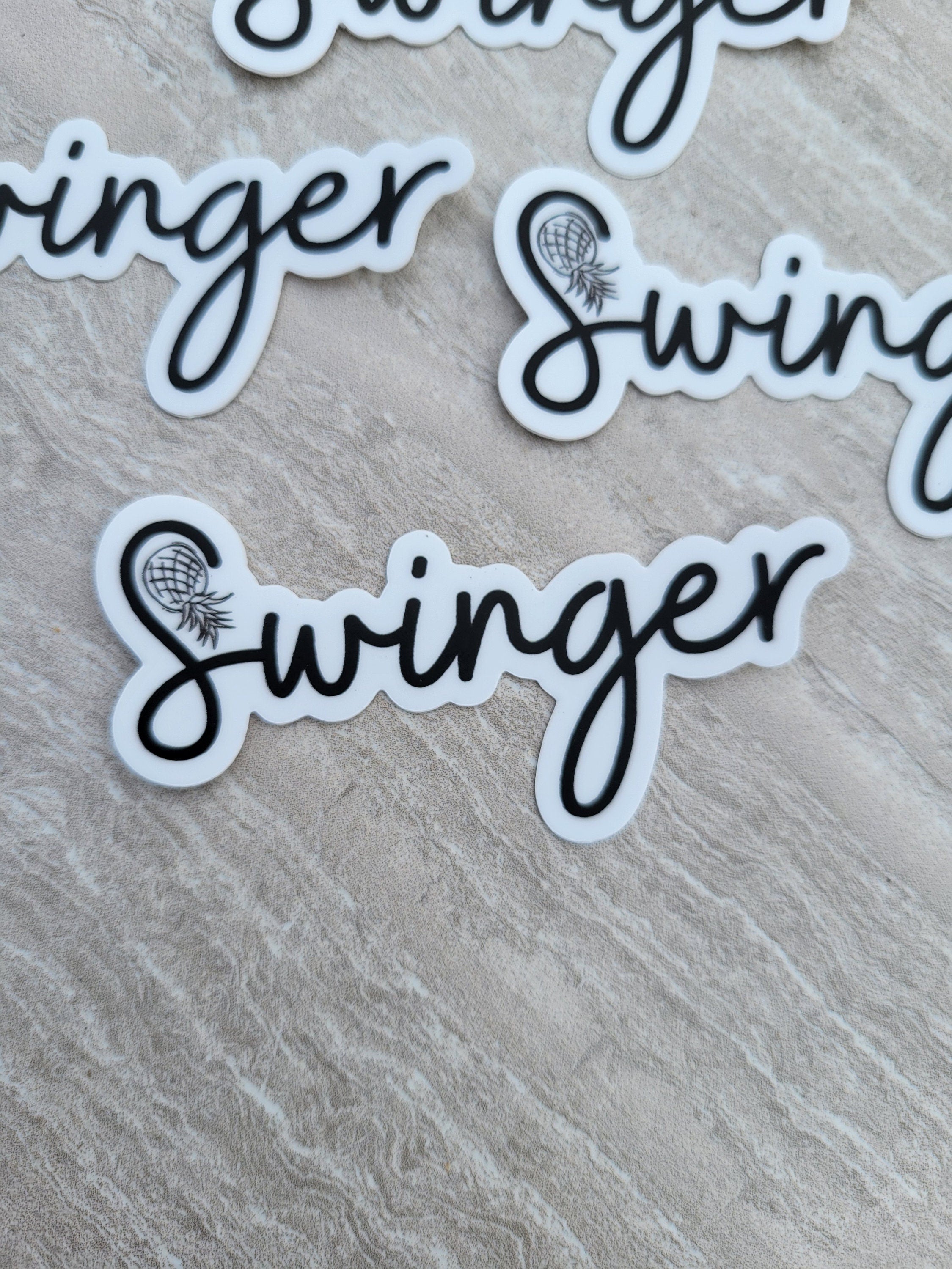 This is a Swinger Sticker with an upside-down pineapple in the "S". Making a statement that is blunt and authentic.