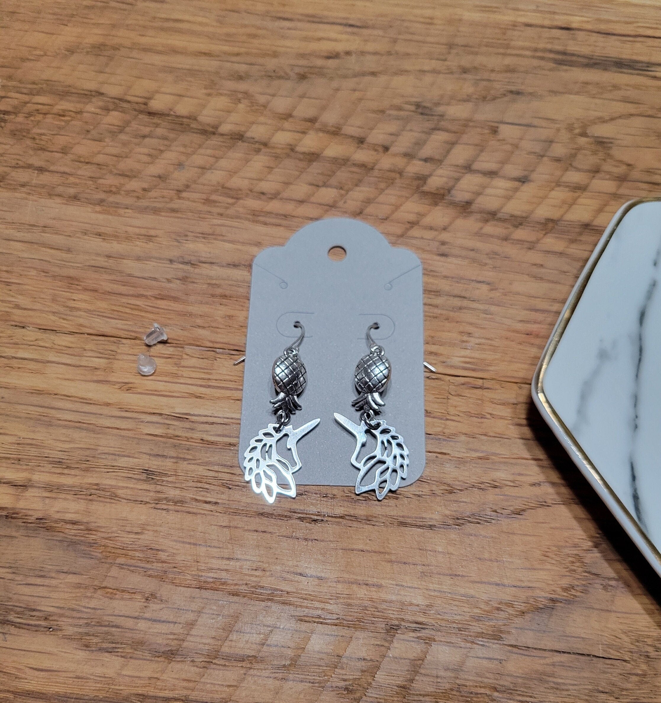 Swinger Unicorn Earrings with an upside down pineapple for the Unicorn and Swinger lifestyle, Silver Unicorn Earrings that dangle and drop