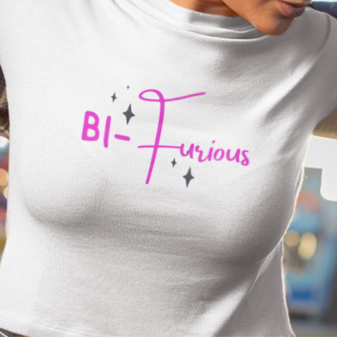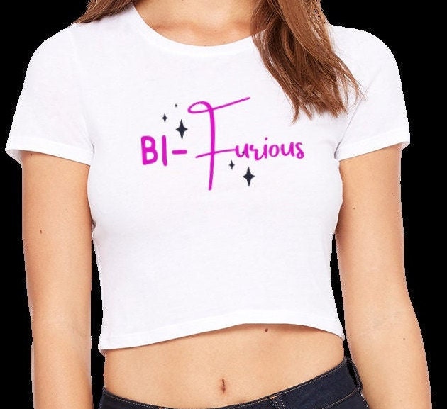 Introducing our bold and eye-catching Bi-Furious Crop Top or T Shirt! Make it a bundle and save more! This vibrant and empowering piece celebrates diversity and inclusivity in style. Made from high-quality materials, this top is not only fashionable but also comfortable to wear. Whether you're looking to make a statement or simply add a unique touch to your outfit, this Bi-Furious Top is the perfect choice. Stand out from the crowd and embrace your individuality with this striking piece.