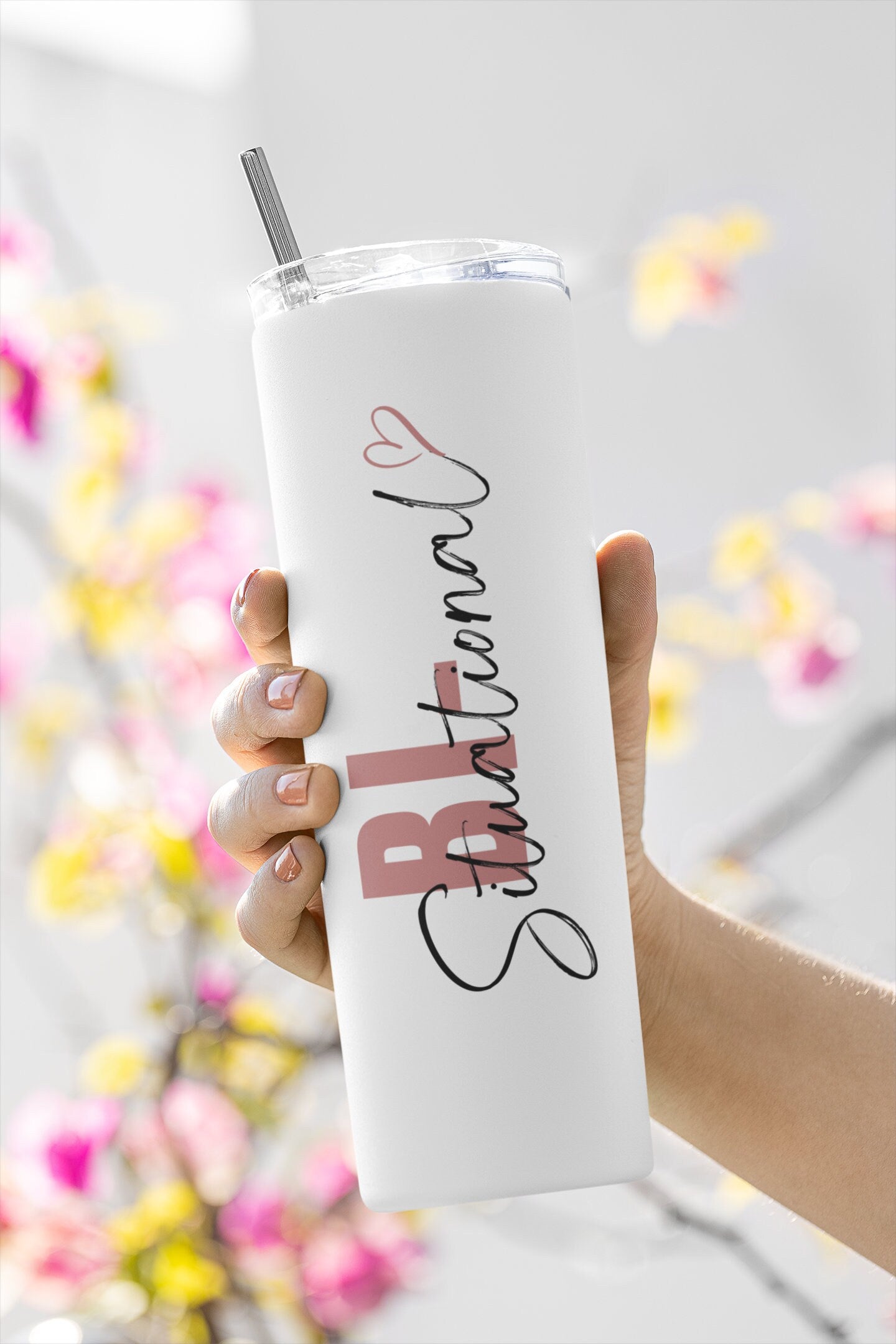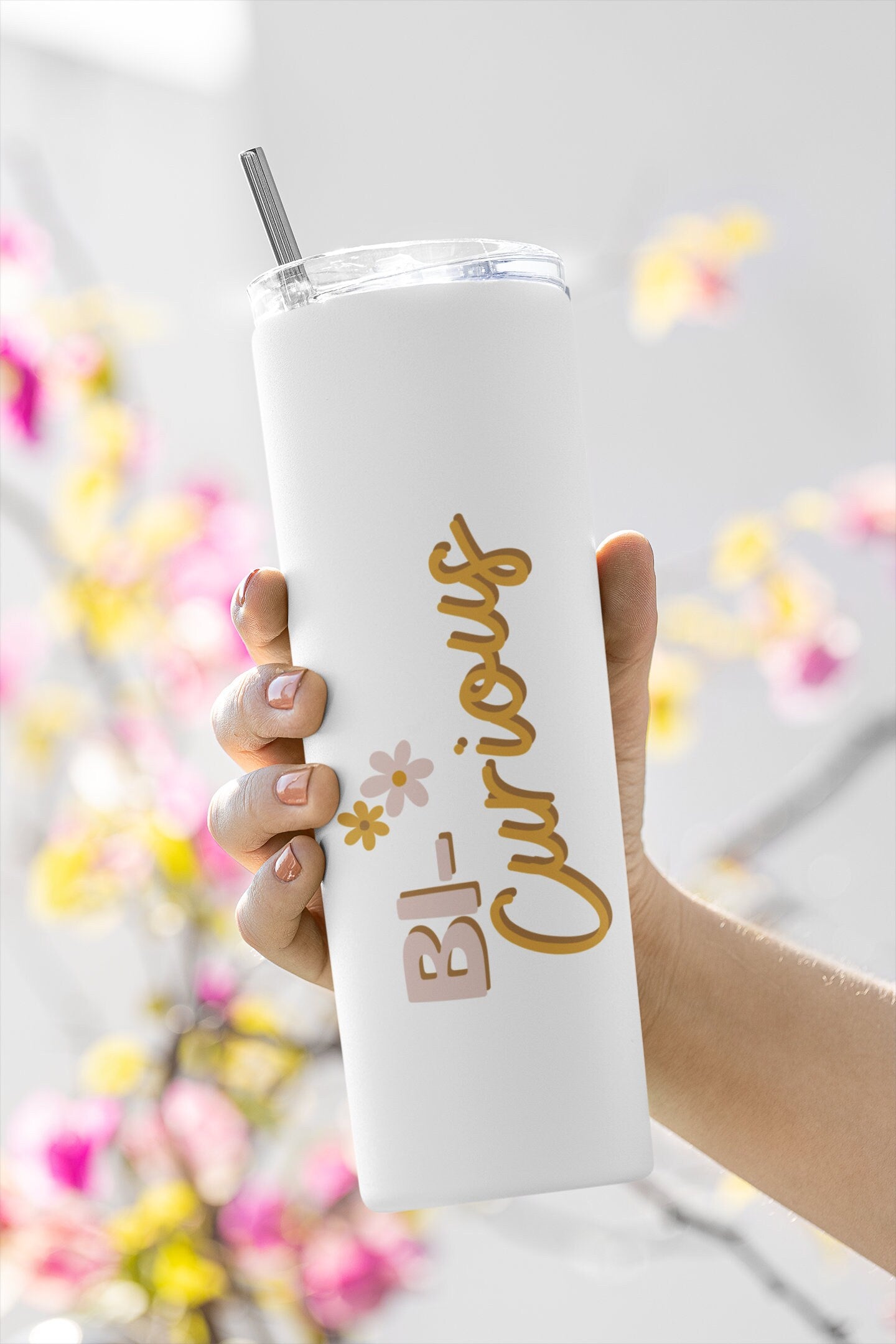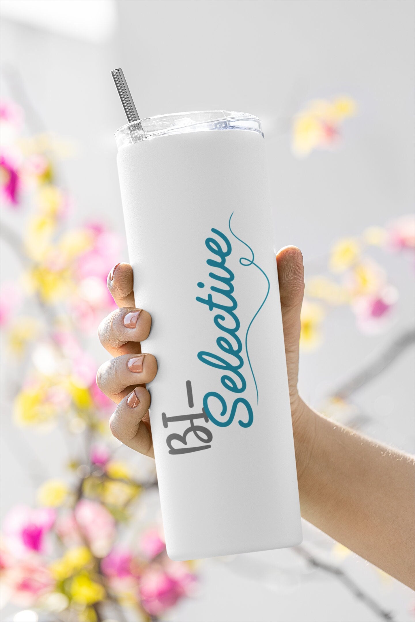 Add a pop of color and a touch of personality with this tumbler, personalized or not. This collection of tumblers feature unique statements: bi curious, bi situational, bi selective, and bi furious. These fun and vibrant stickers are perfect for showing off your LGBTQ lifestyle or adding a playful twist to your swinger lifestyle accessories.