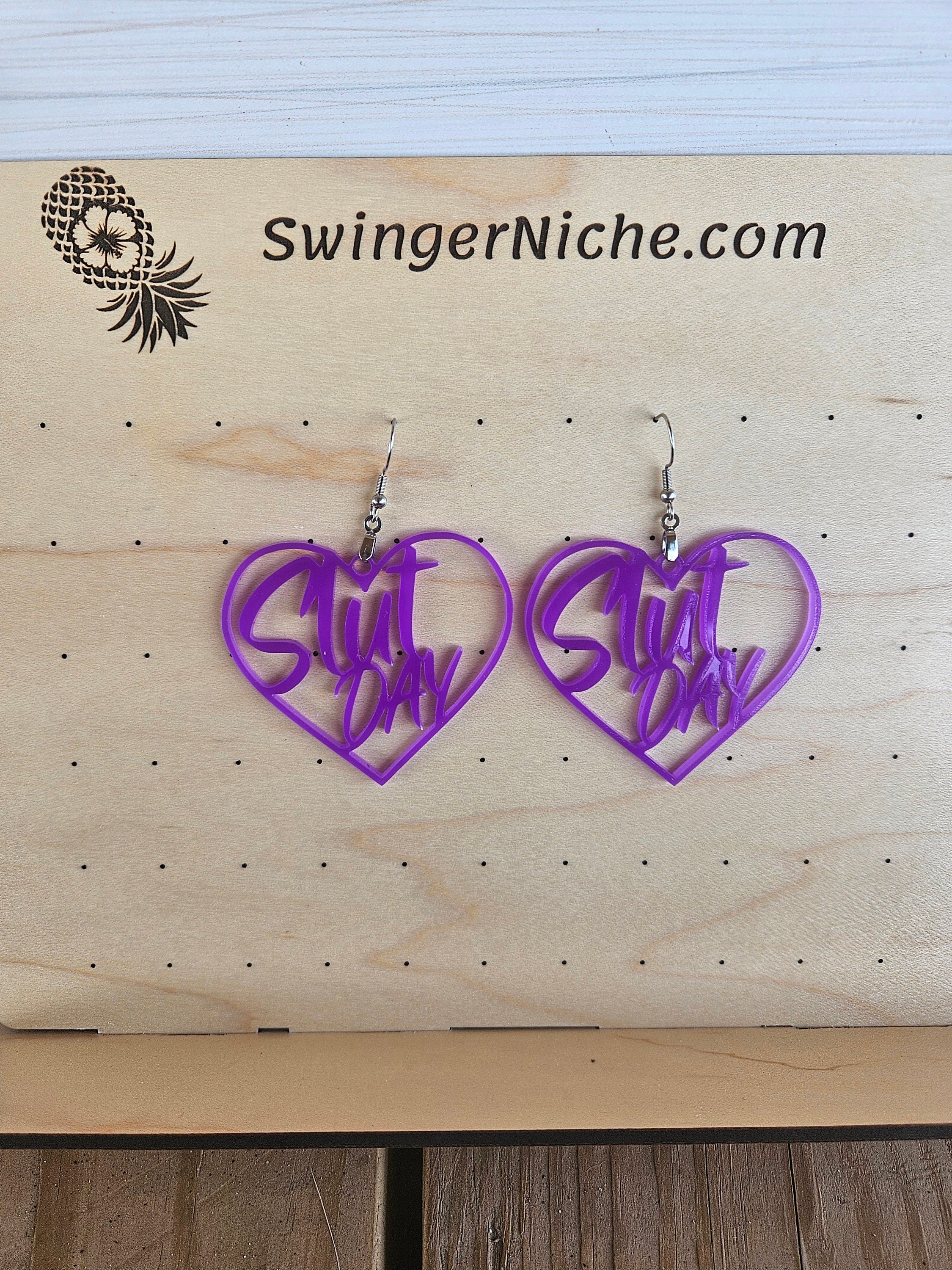 Dark Purple Slut Day Earrings | 2" Height