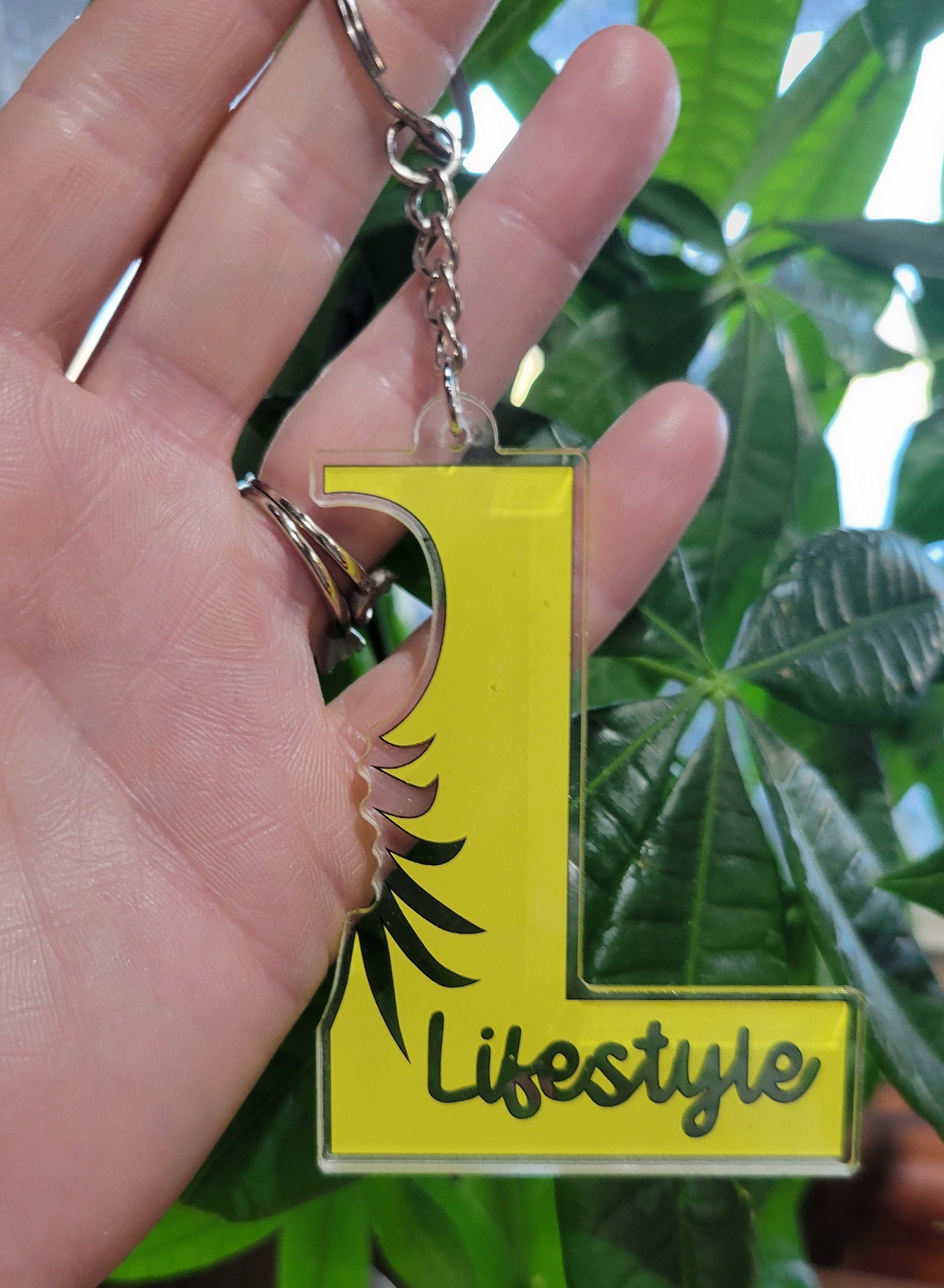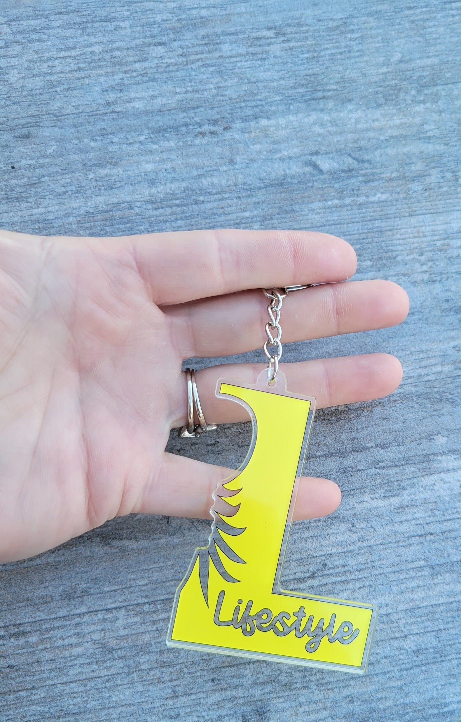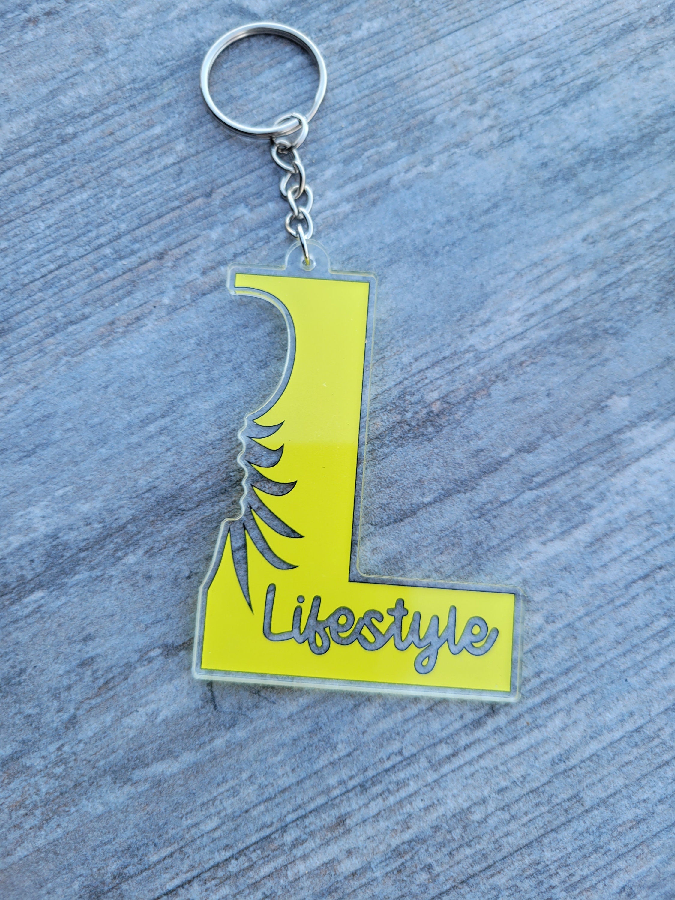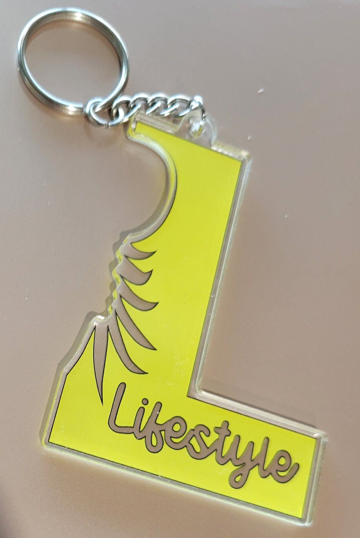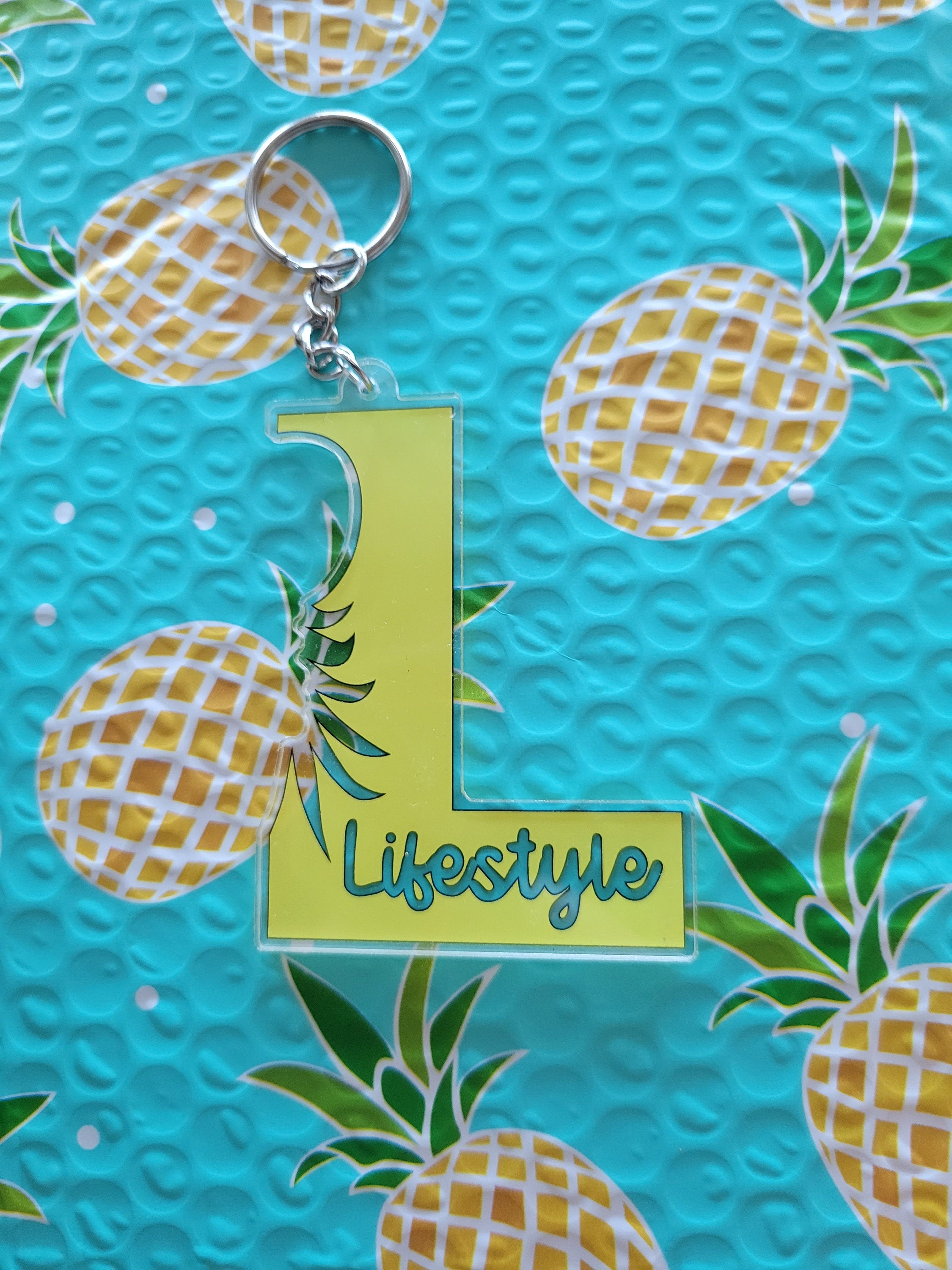 Lifestyle Keychain / Zipper Pull with the letter L, Lifestyle, and an outline of an upside down pineapple, Alternative Lifestyle Keychain