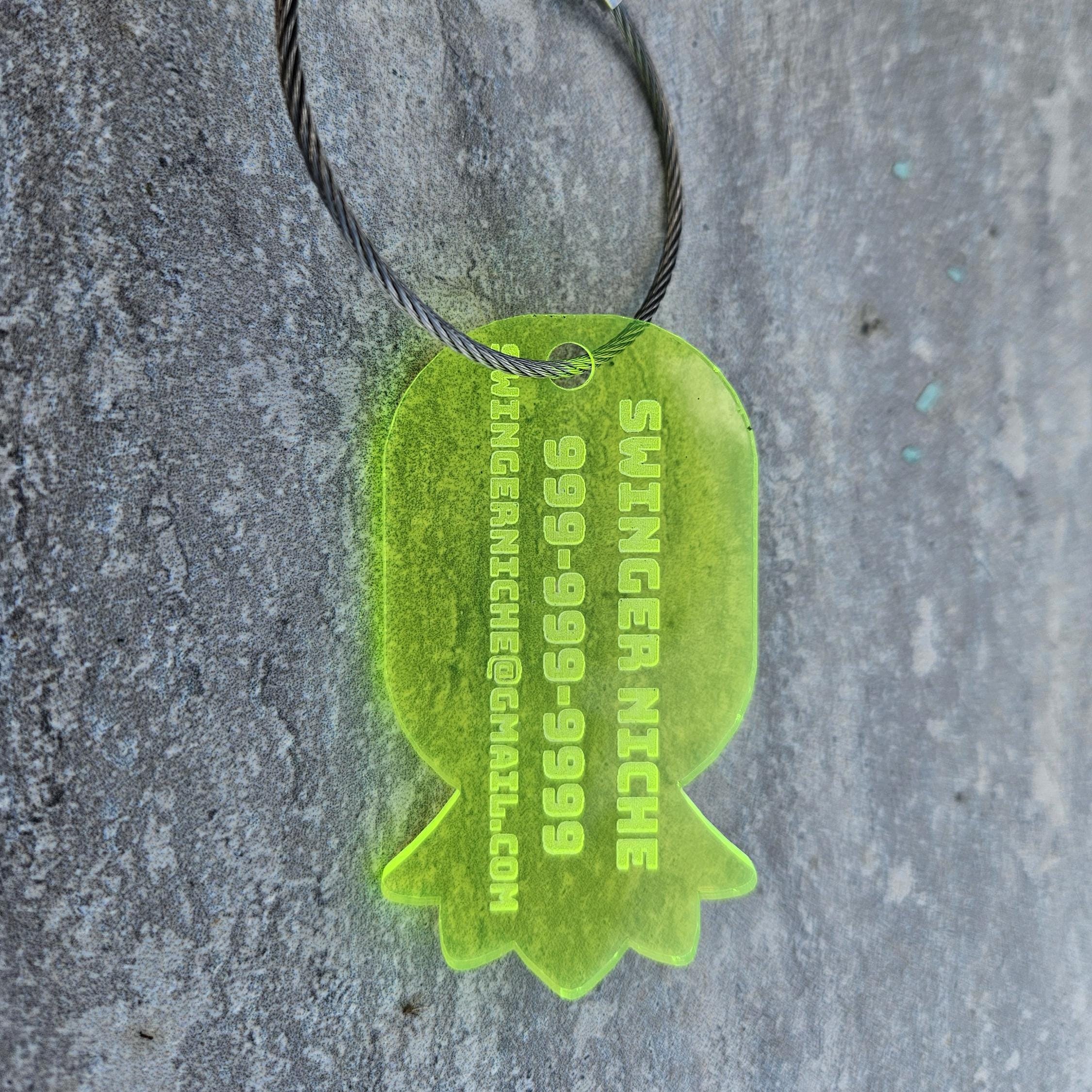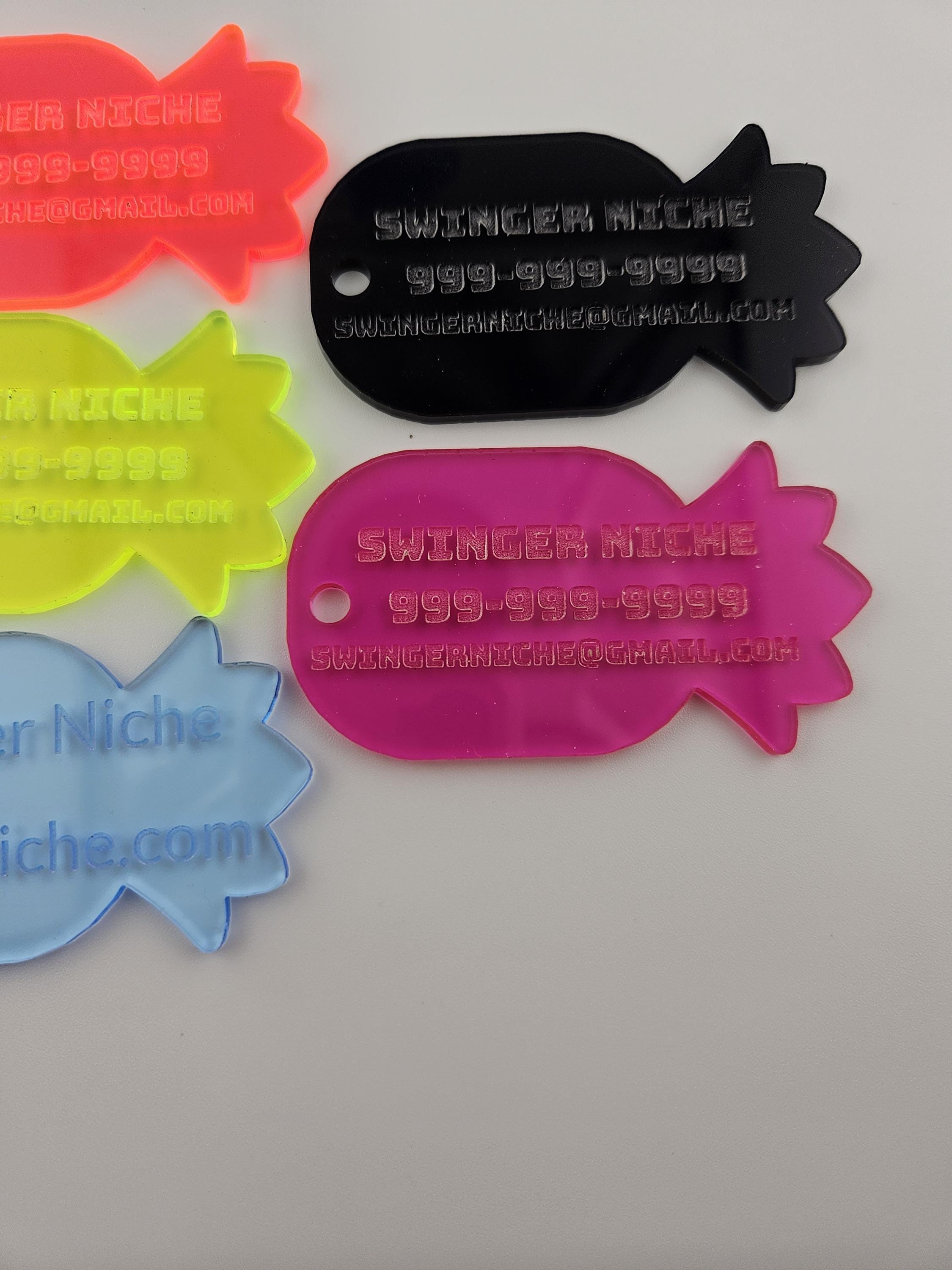 Elevate your travel experience with our Personalized Upside-down Pineapple Lasered Acrylic Luggage Tags! These stylish tags are not only a fun travel accessory but also make your bags stand out. Customizable with your name or a unique message, they blend practicality with personalization. Crafted from durable acrylic, each tag features a vibrant upside-down pineapple design, symbolizing the Swinger Lifestyle. Perfect for frequent flyers or as a thoughtful gift. Make your travels memorable – order your customized tags today!