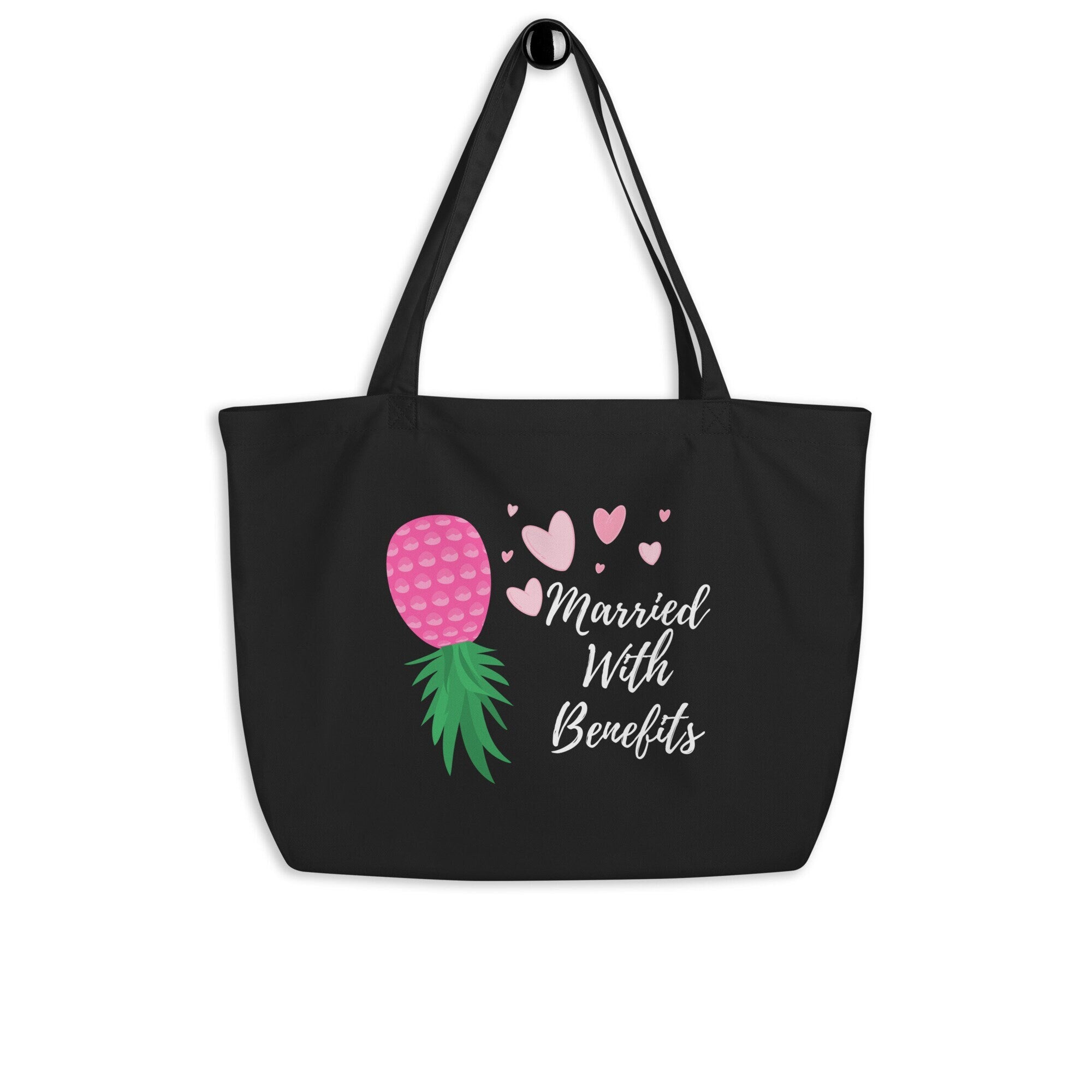 Married with Benefits Tote Bag / Swinger Accessory/ Pink Upside Down Pineapple Bag / Large Black Bag