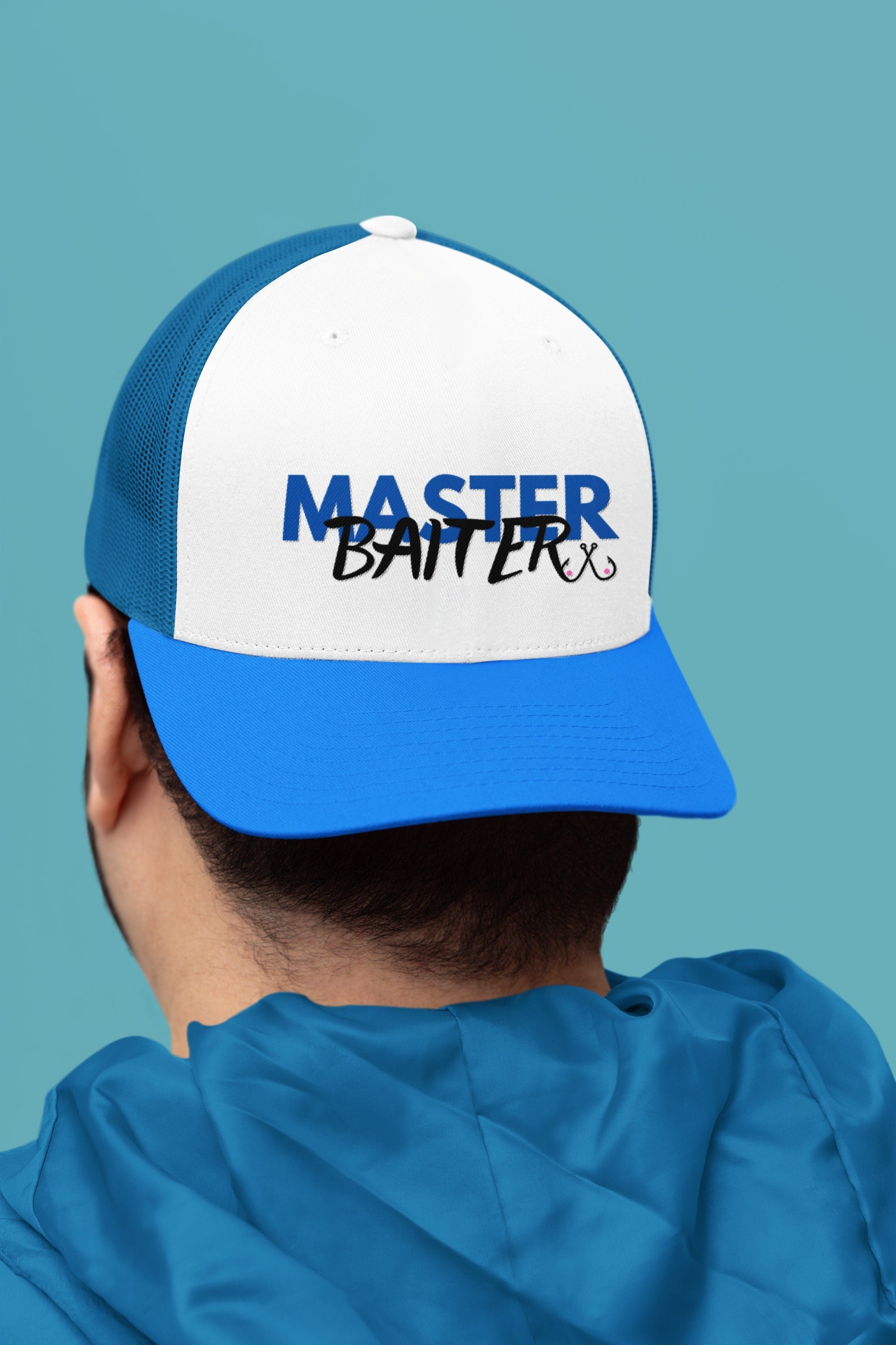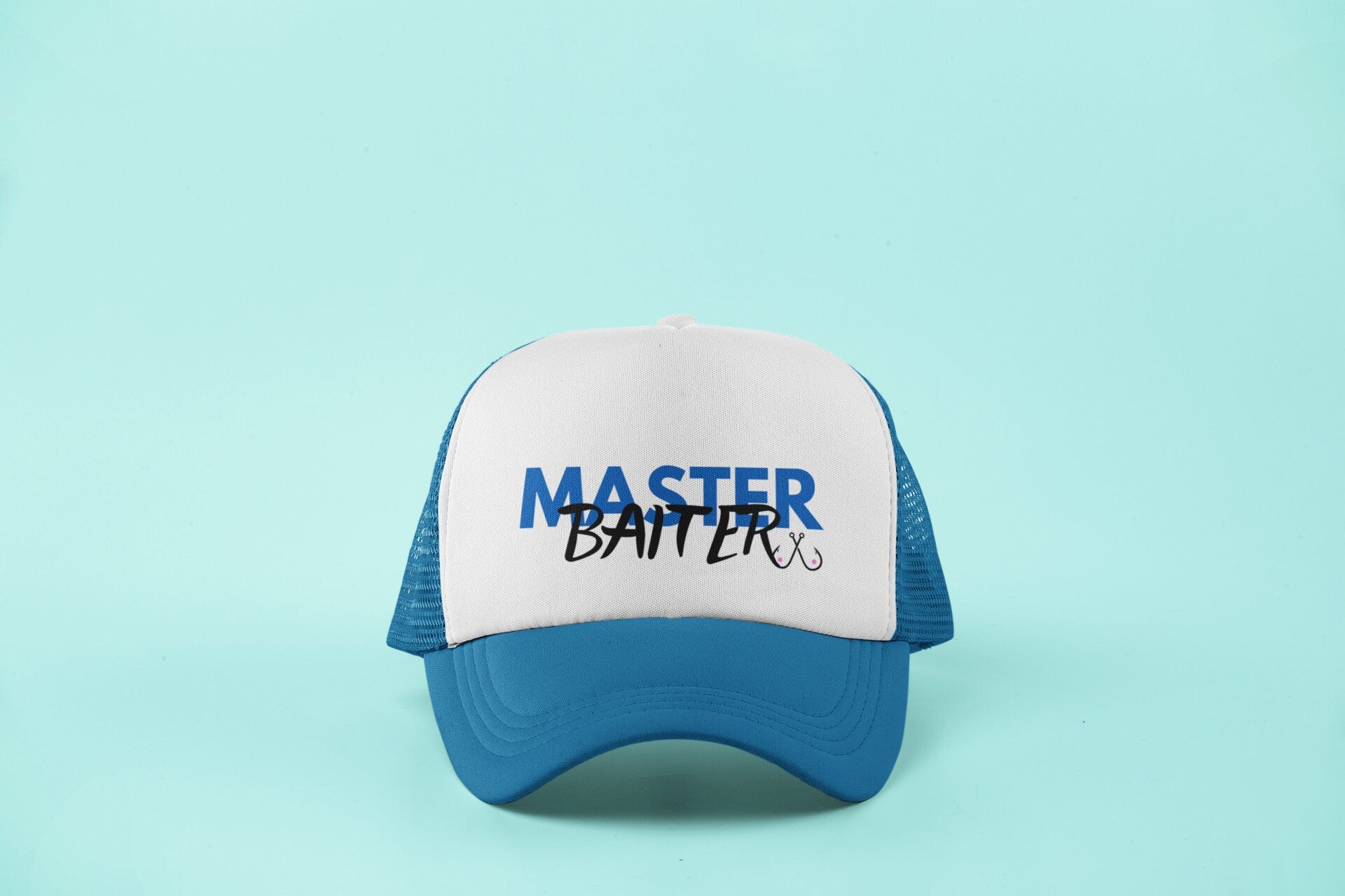 Master Baiter Blue Trucker Hat , Gift for Him, Funny Hat, Fishing Hat for Him, Adjustable