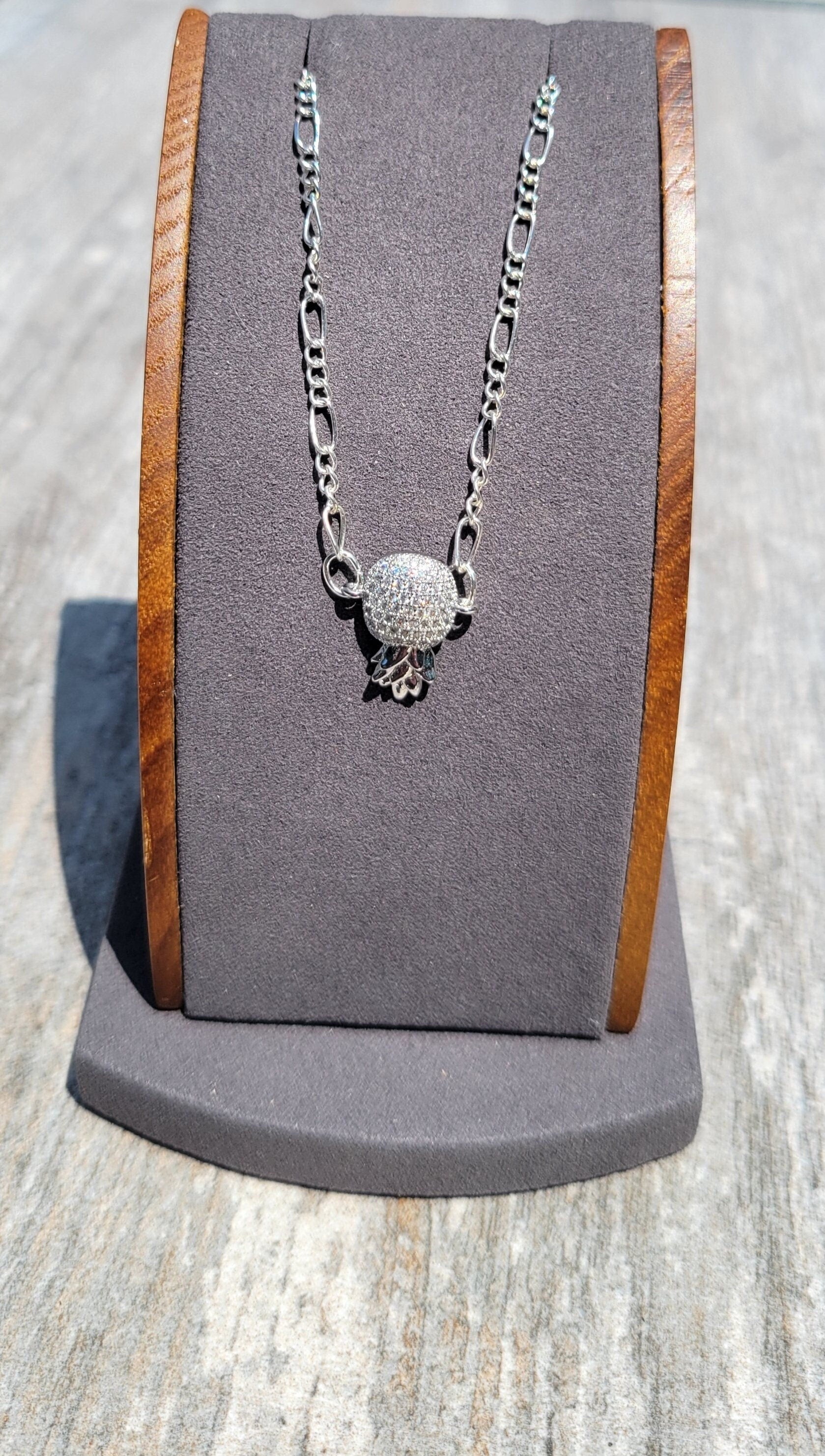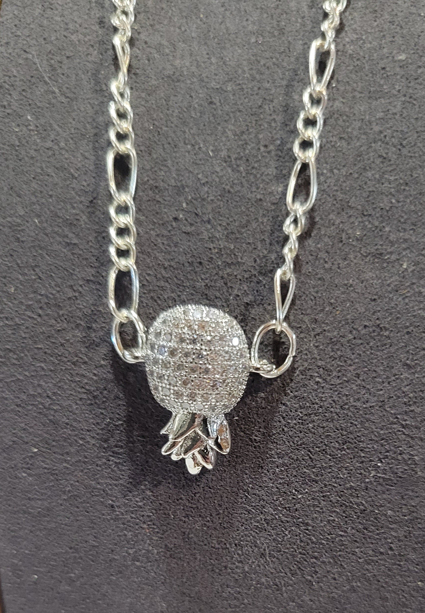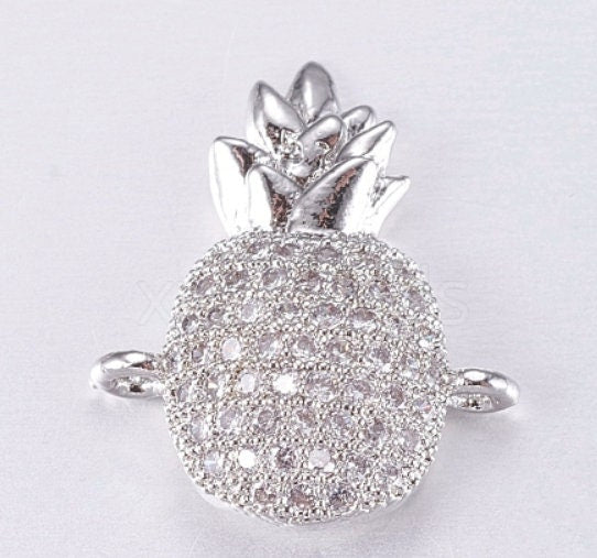 Pineapple Charm is brass micro pave cubic zirconia with a Silver link necklace