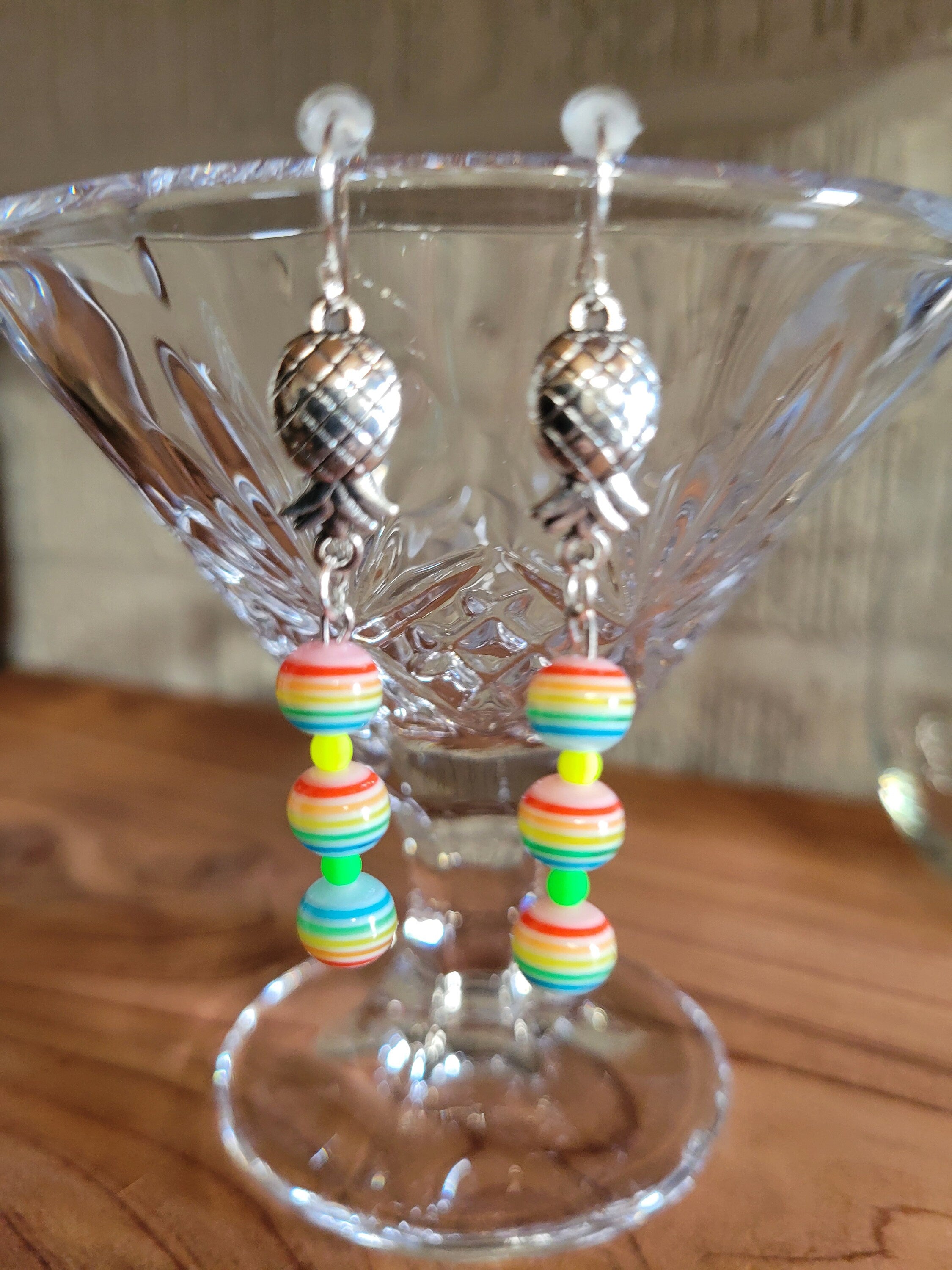 * Rainbow beaded upside-down pineapple earrings with small rubber earring backings