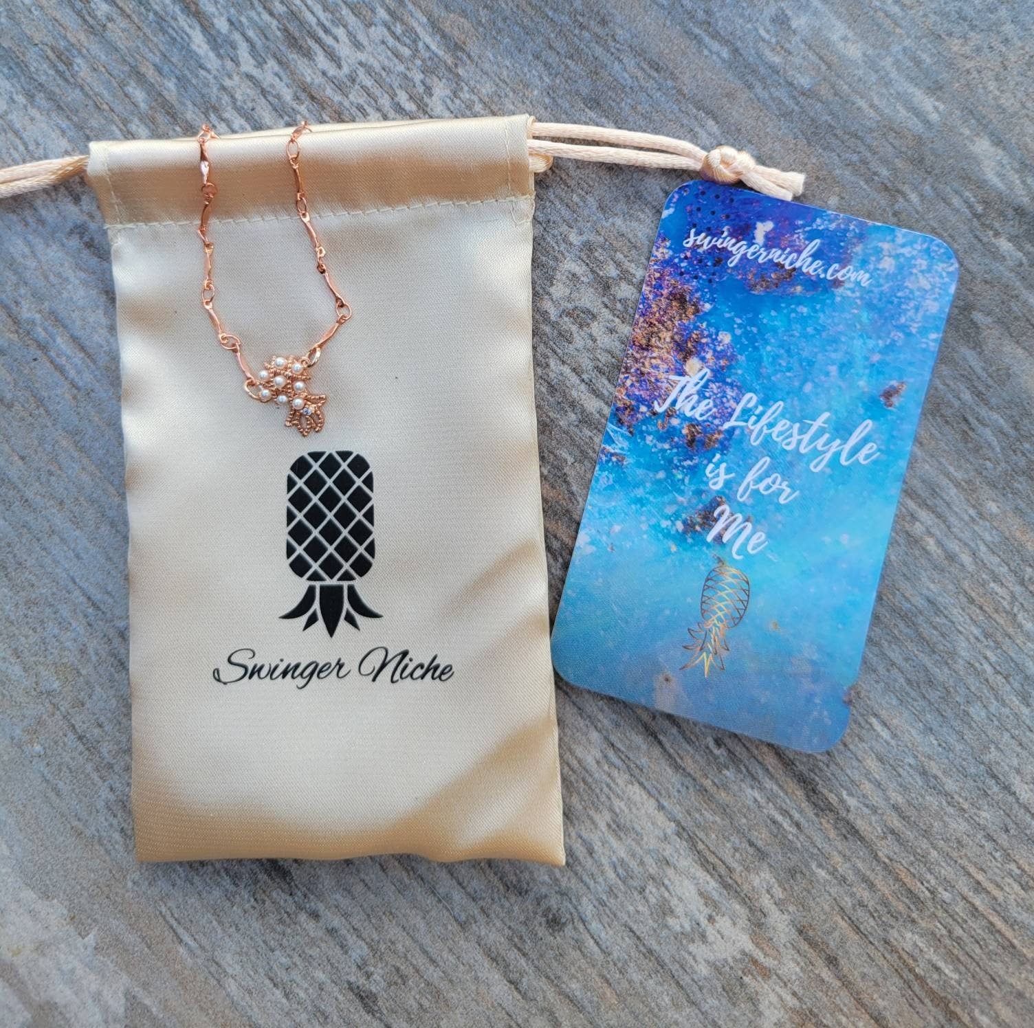 Rose Gold Upside down Pineapple Necklace, 16" length & Lobster Clasp, Faux Pearls on a Rose Gold Chain, Swinger lifestyle, Hotwife Necklace