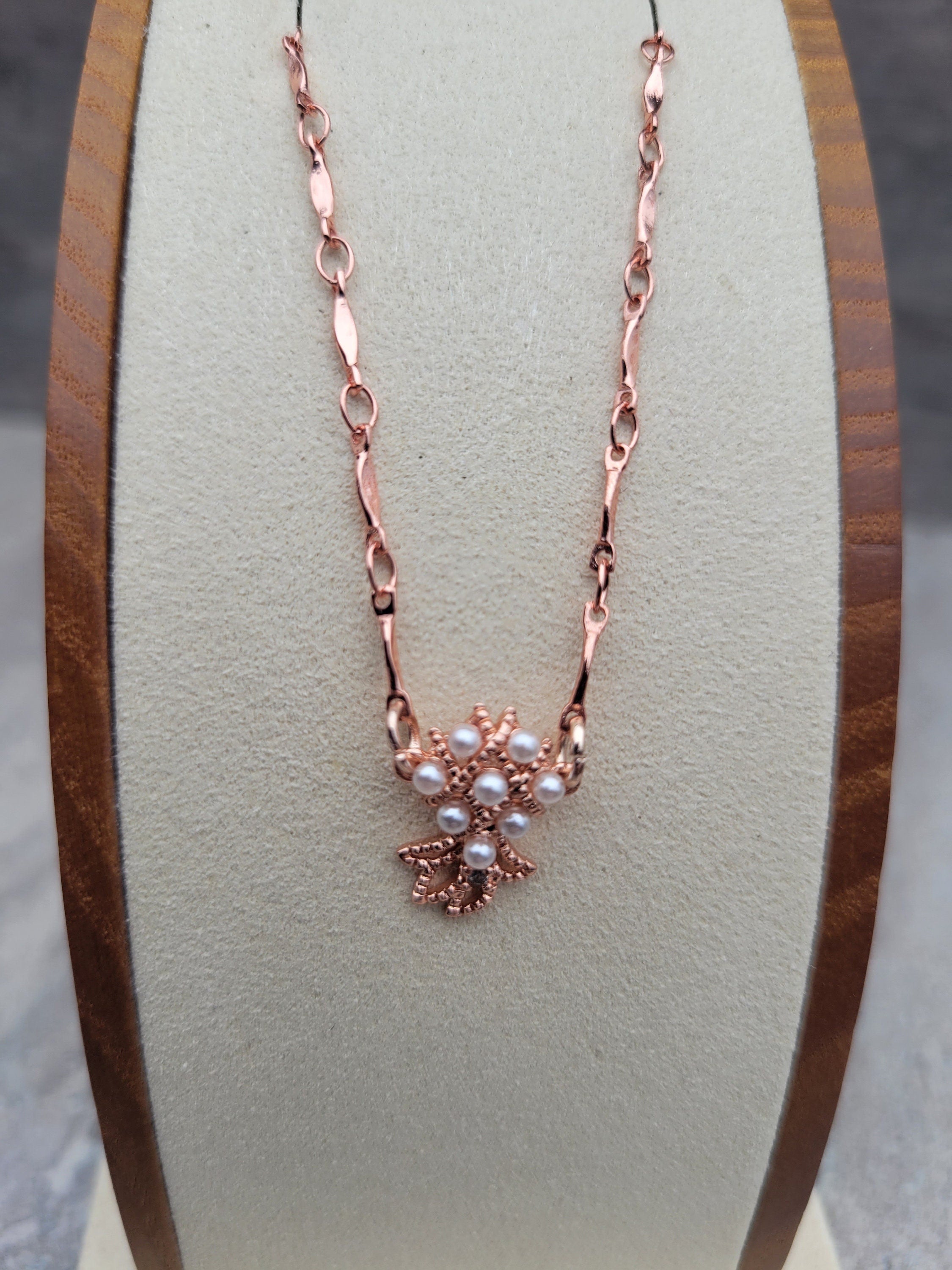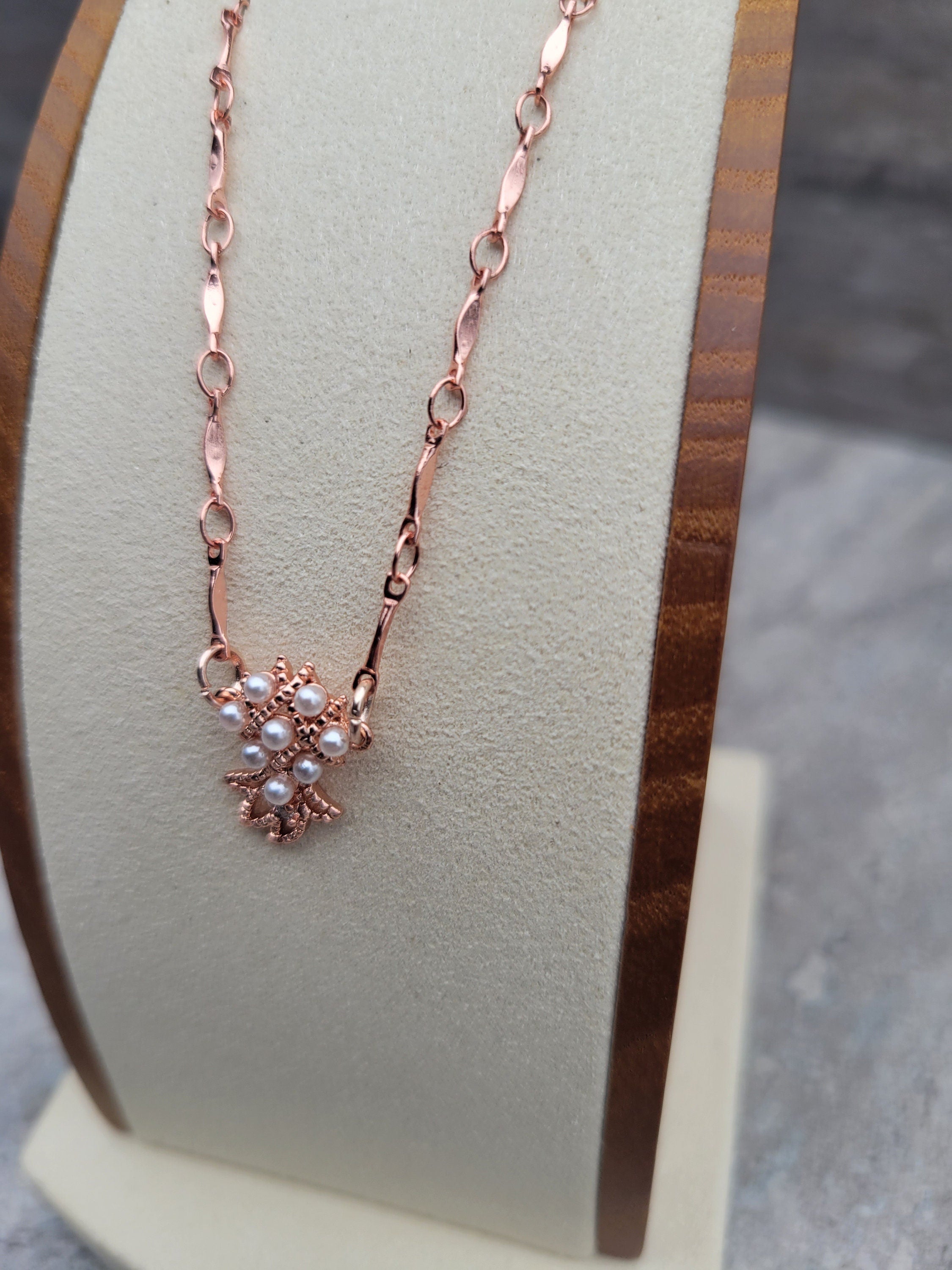 * Rose gold pineapple necklace with faux pearls and a lobster clasp