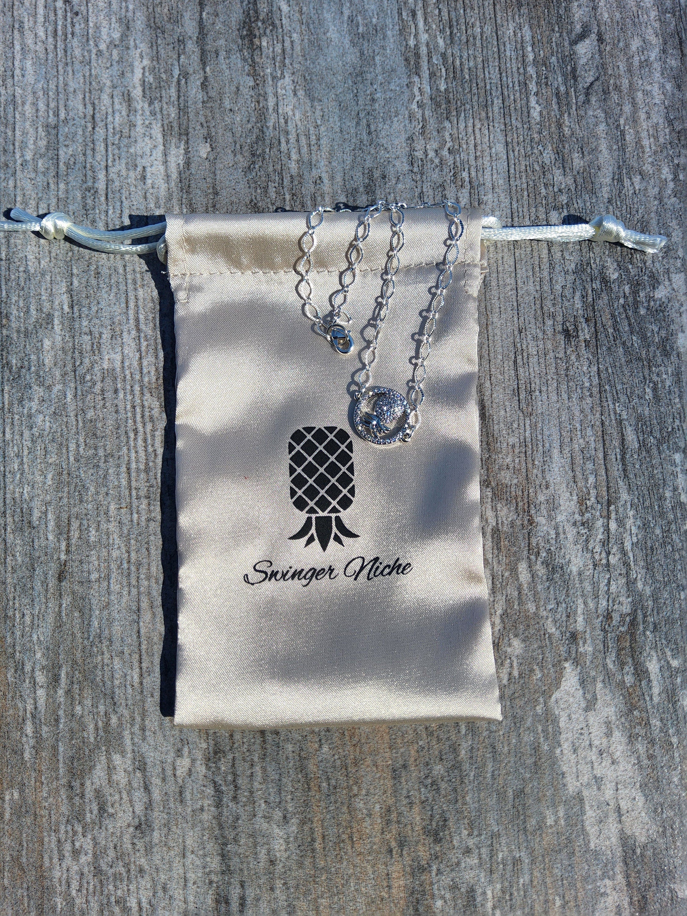 Introducing our charming small dainty pineapple anklet/necklace that adds a touch of playfulness and style to your ensemble. Crafted with a sleek silver-colored finish, this versatile piece is perfect for the swinger lifestyle when worn upside down, making a subtle yet bold statement. Whether you wear it around your neck or ankle, this unique accessory is sure to spark joy and curiosity wherever you go. Elevate your look with this fun and eye-catching pineapple design today!